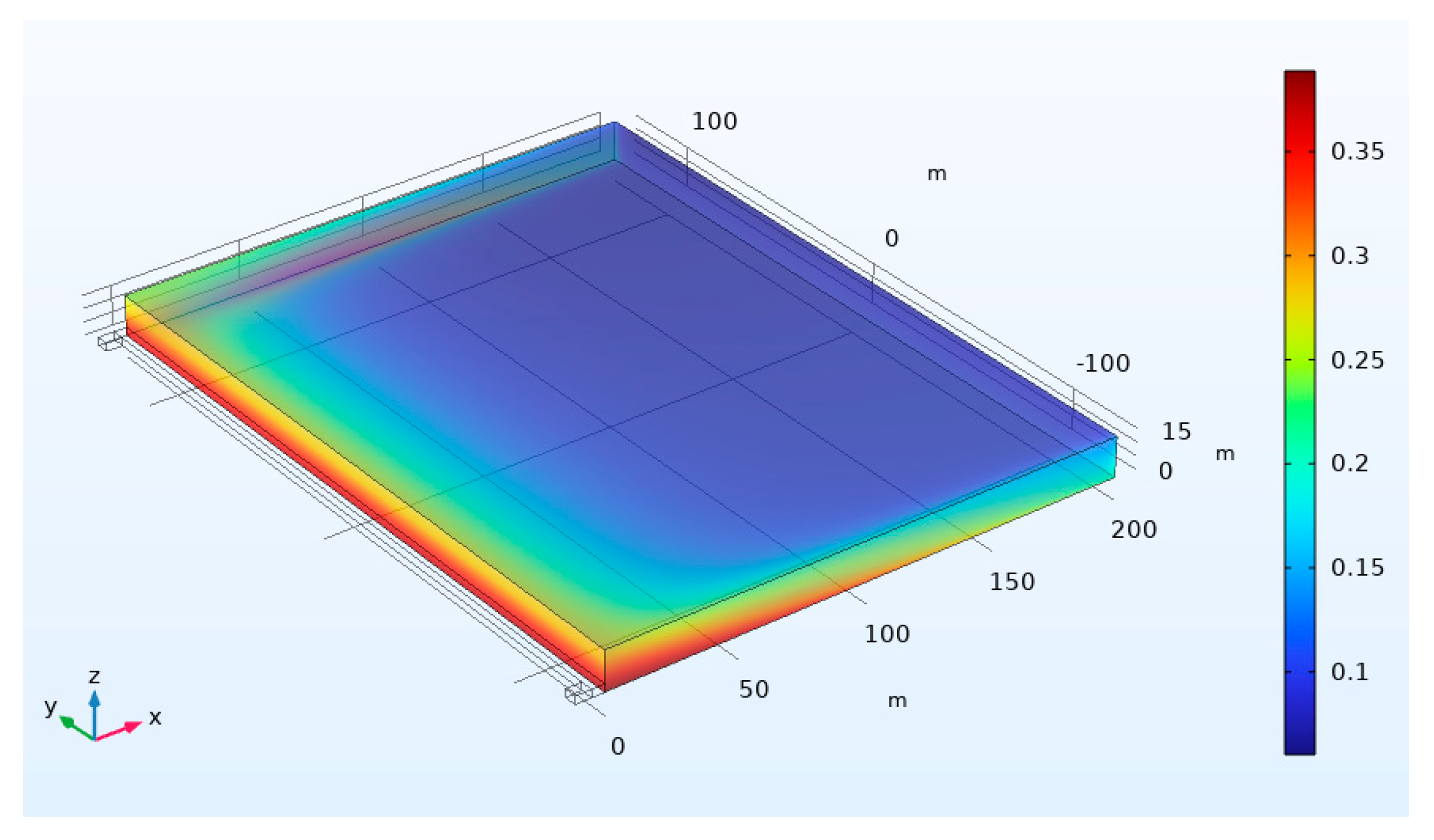 Simulations were conducted using the transient solver in COMSOL Multiphysics, where the governing equations were discretized and solved using the finite element method. The total calculation time was 3 d, with a time step of 0.1 d.