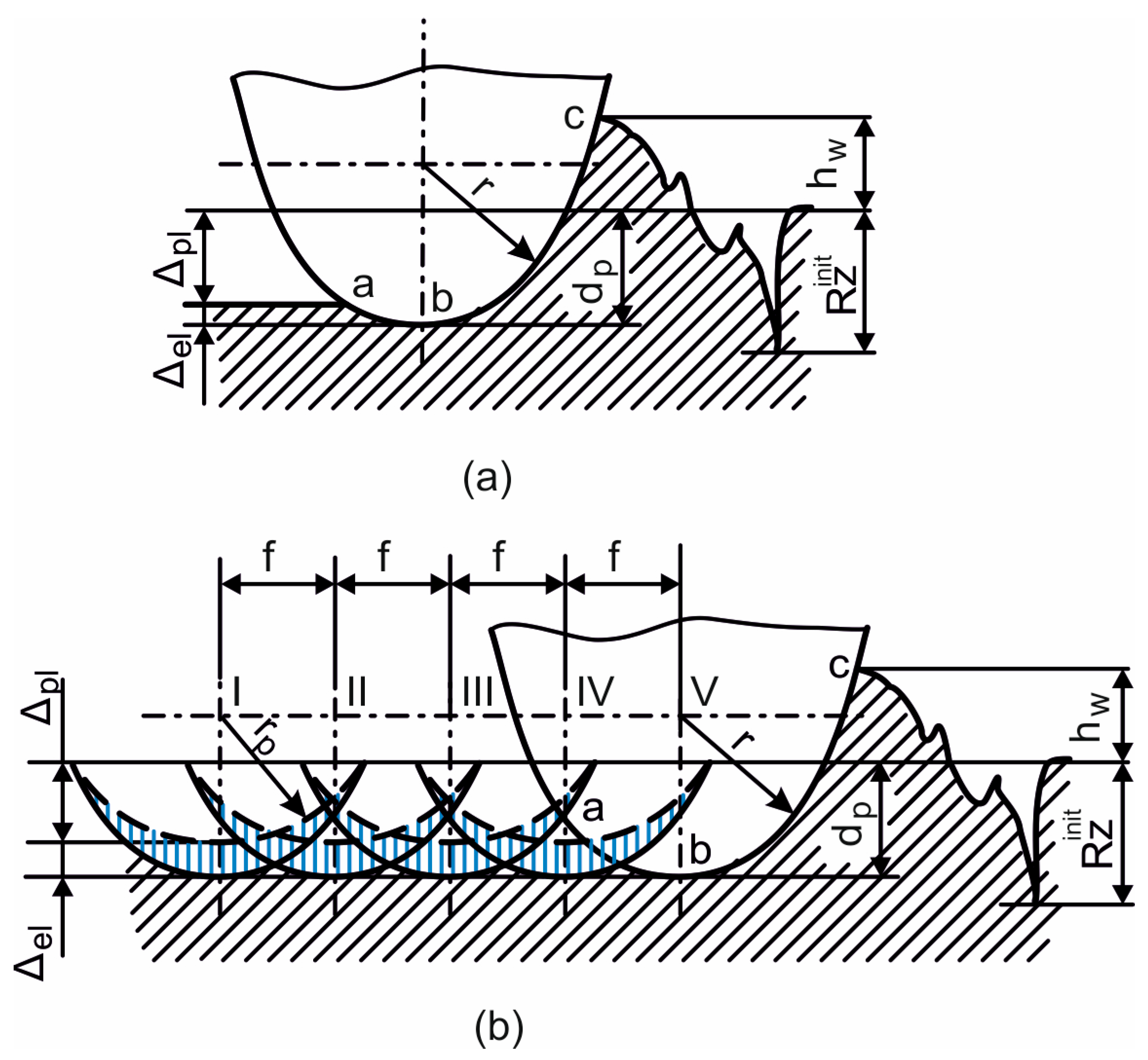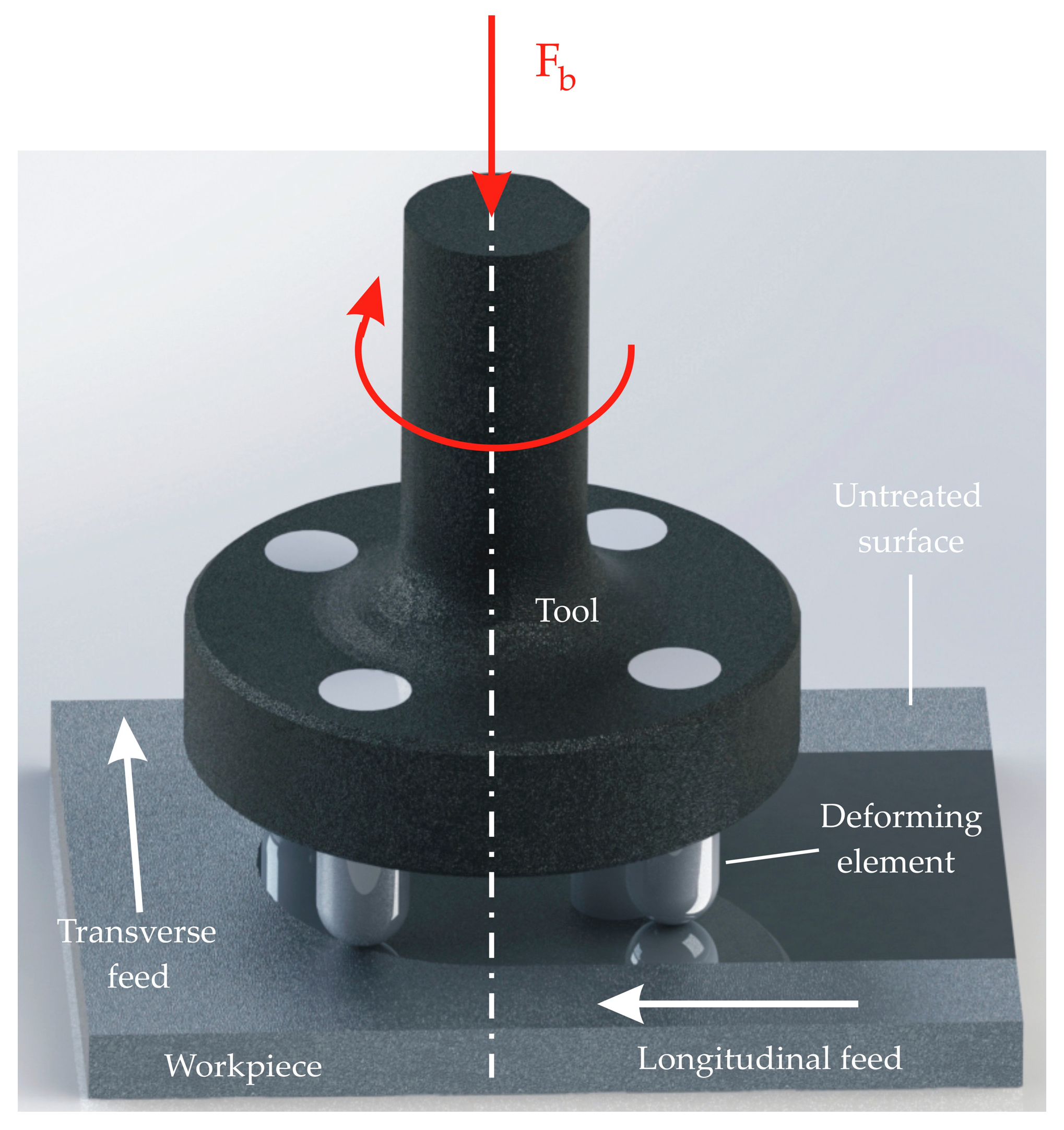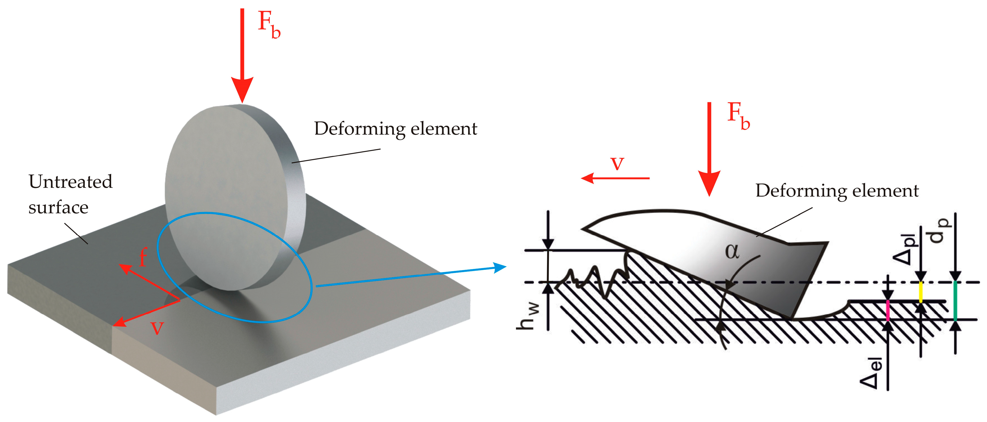 - Bobrovskij, I.; Bobrovskij, N.; Khaimanovich, A.; Travieso-Rodriguez, J.A. Impacts of surface texture and nature of friction on energy-force efficiency of surface plastic deformation during burnishing. Metals 2022, 12, 1568. [Google Scholar] [CrossRef]