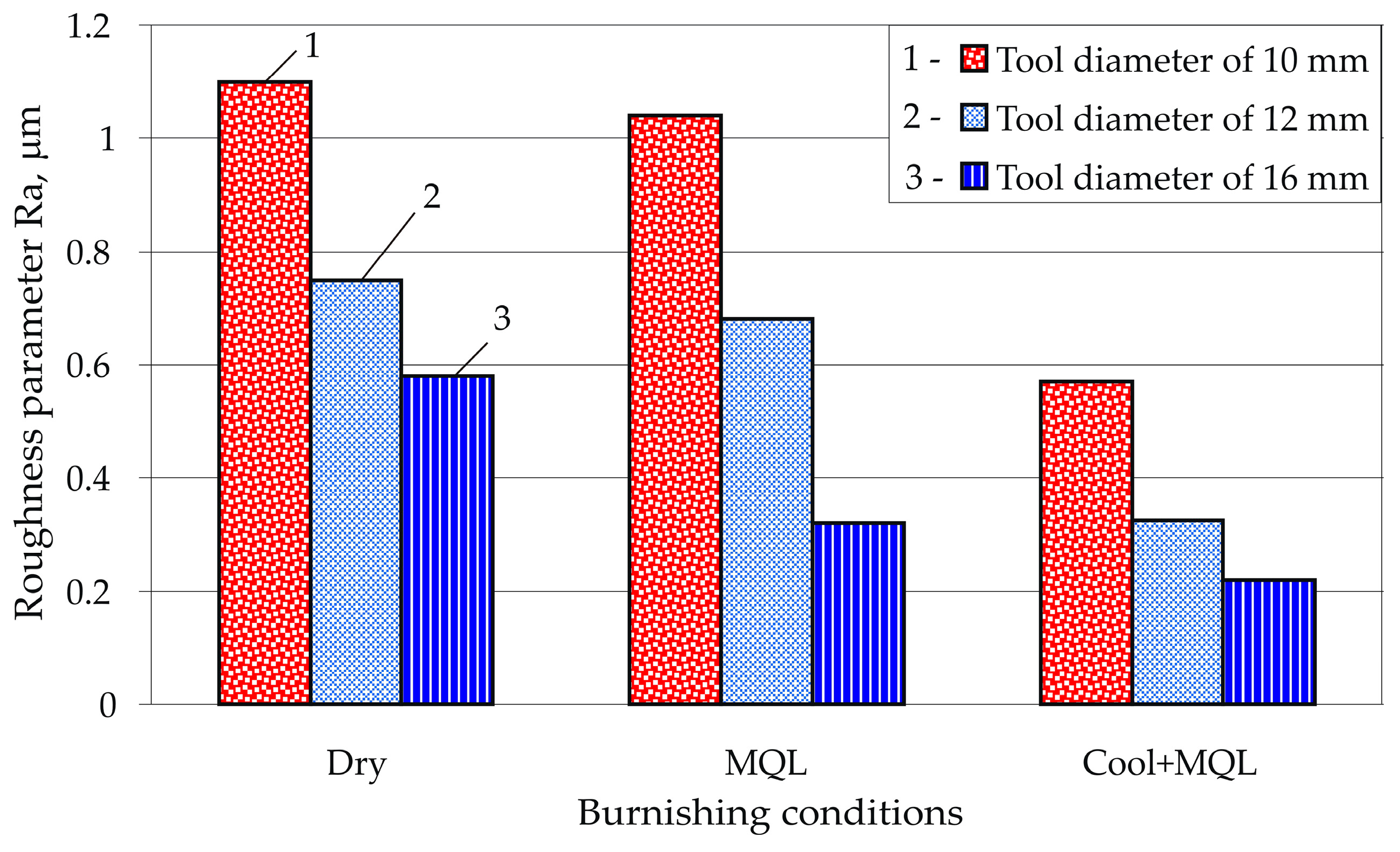 - Rachmat, H.; Rahim, E.A.; Mohid, Z.; Mahalil, K.; Kasah, A.A.; Nadzri, A. Effect of Burnishing Tool Diameter and Coolant Strategies on Burnishing Performance. IOP Conf. Ser. J. Phys. Conf. Ser. 2019, 1150, 012070. [Google Scholar] [CrossRef]