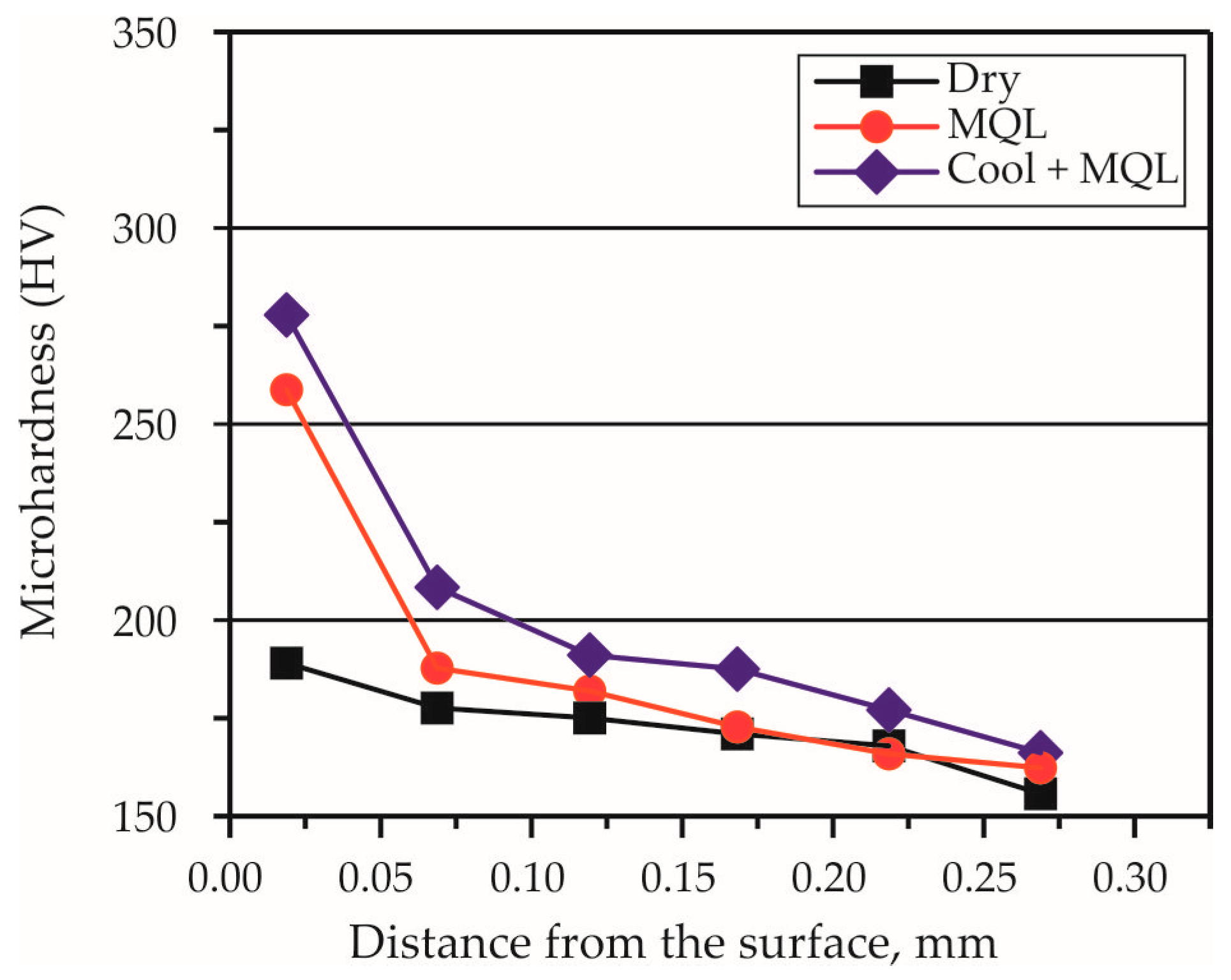- Rachmat, H.; Mahalil, K.; Mohid, Z.; Rahim, E.A. Comparison between Dry, MQL, and Cryogenic Cooling Technique on Surface Integrity of Burnished Surface. Int. J. Integr. Eng. 2019, 11, 35–41. [Google Scholar] [CrossRef]