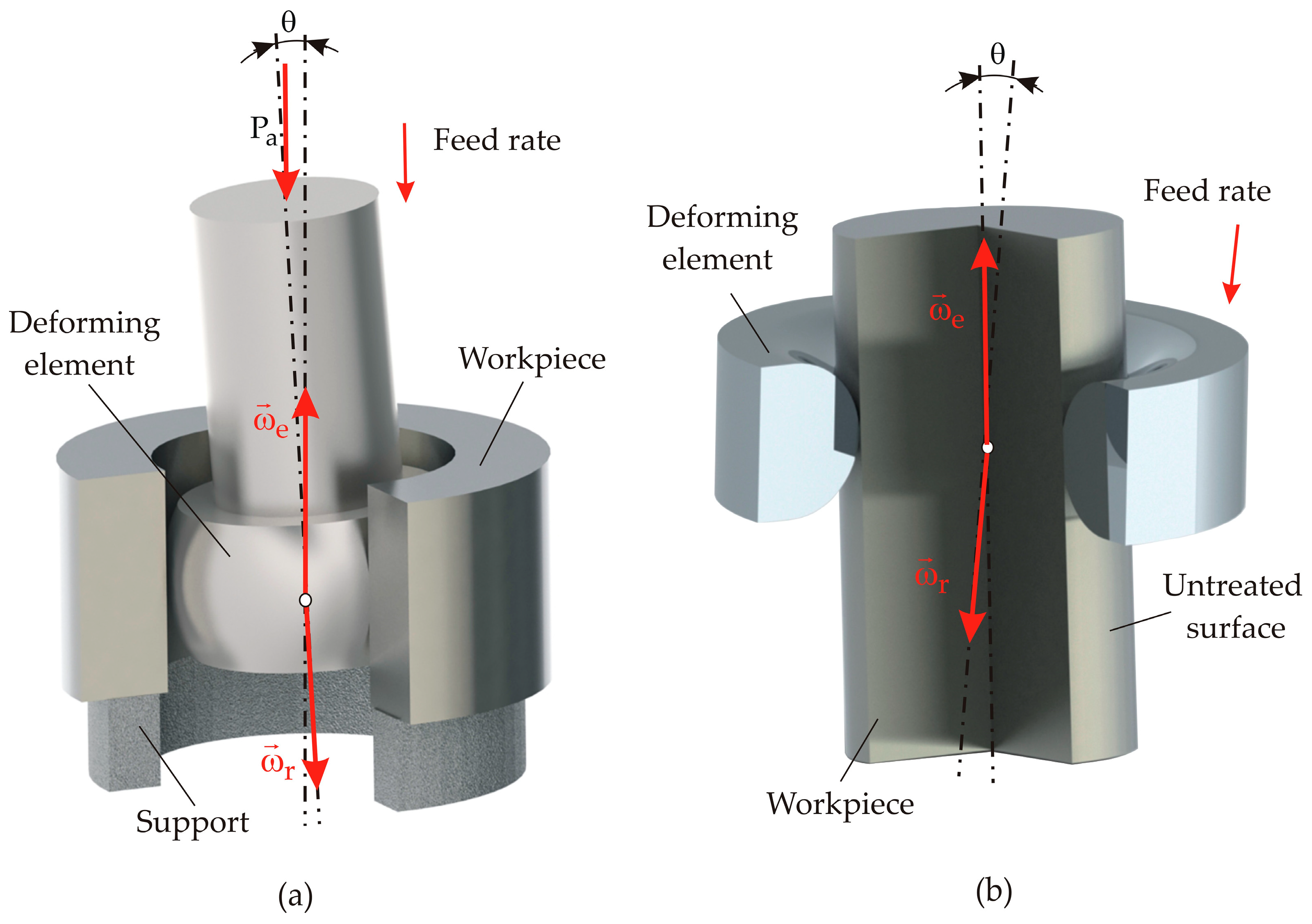 - Sartkulvanich, P.; Altan, T.; Jasso, F.; Rodriguez, C. Finite element modeling of hard roller burnishing: An analysis on the effects of process parameters upon surface finish and residual stresses. J. Manuf. Sci. Eng. 2007, 129, 705–716. [Google Scholar] [CrossRef]