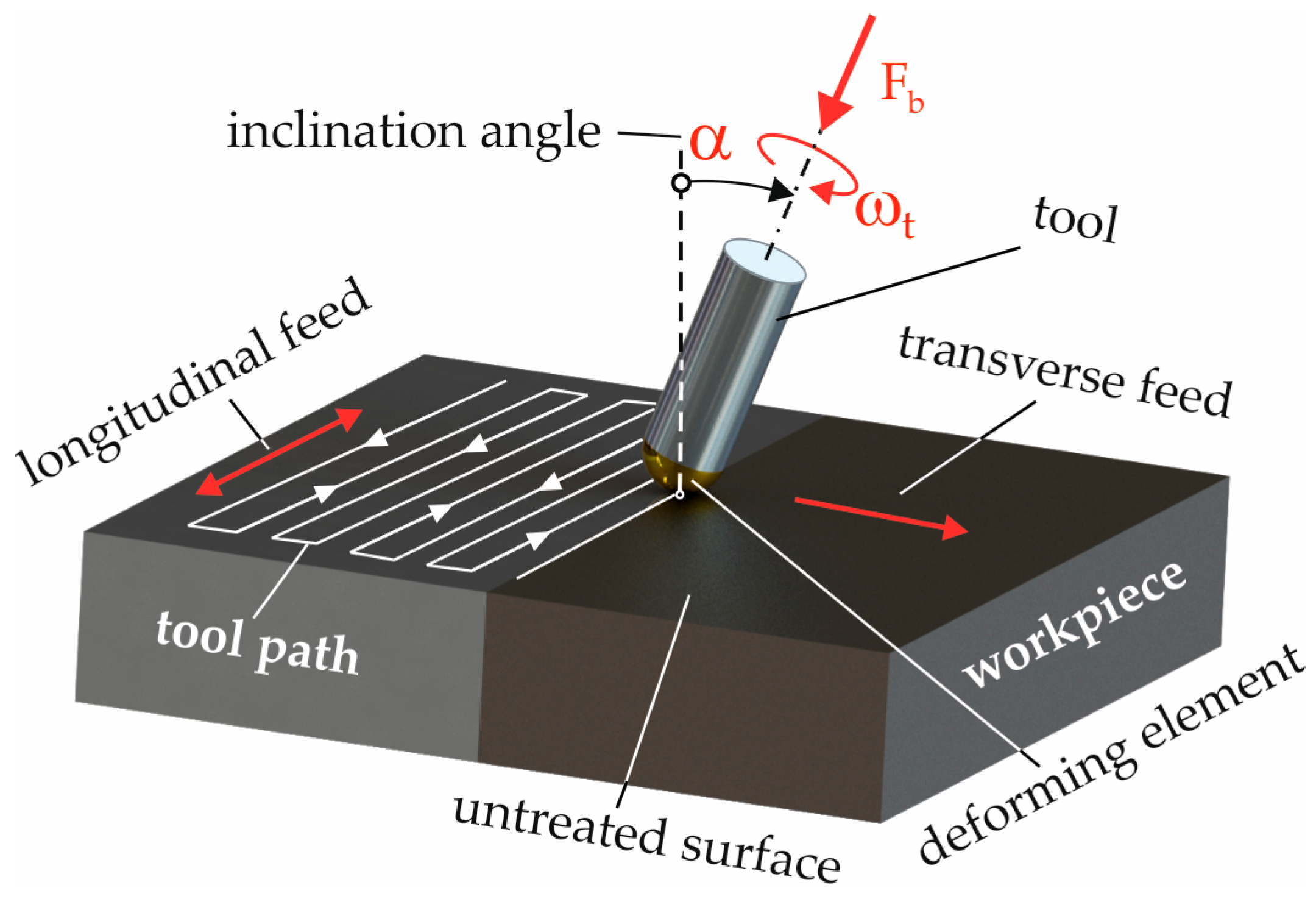 - Kato, H.; Hirokawa, W.; Todaka, Y.; Yasunaga, K. Improvement in surface roughness and hardness for carbon steel by slide burnishing process. Mater. Sci. Appl. 2021, 12, 171–181. [Google Scholar] [CrossRef]