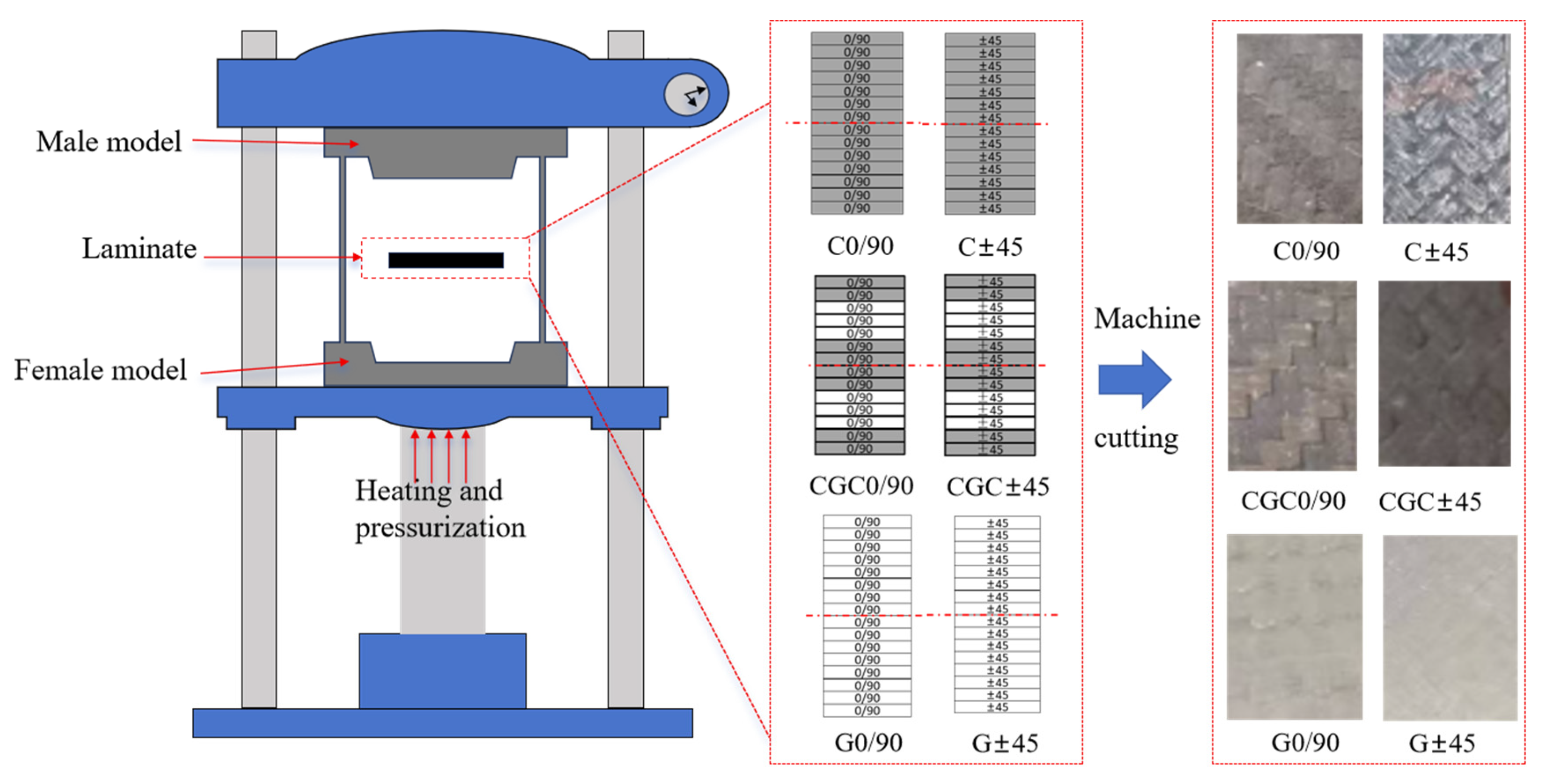 Overall, the laminates of different layup types and fiber materials exhibit significant differences in pore characteristics. In the carbon fiber unidirectional layup samples of C0/90 (