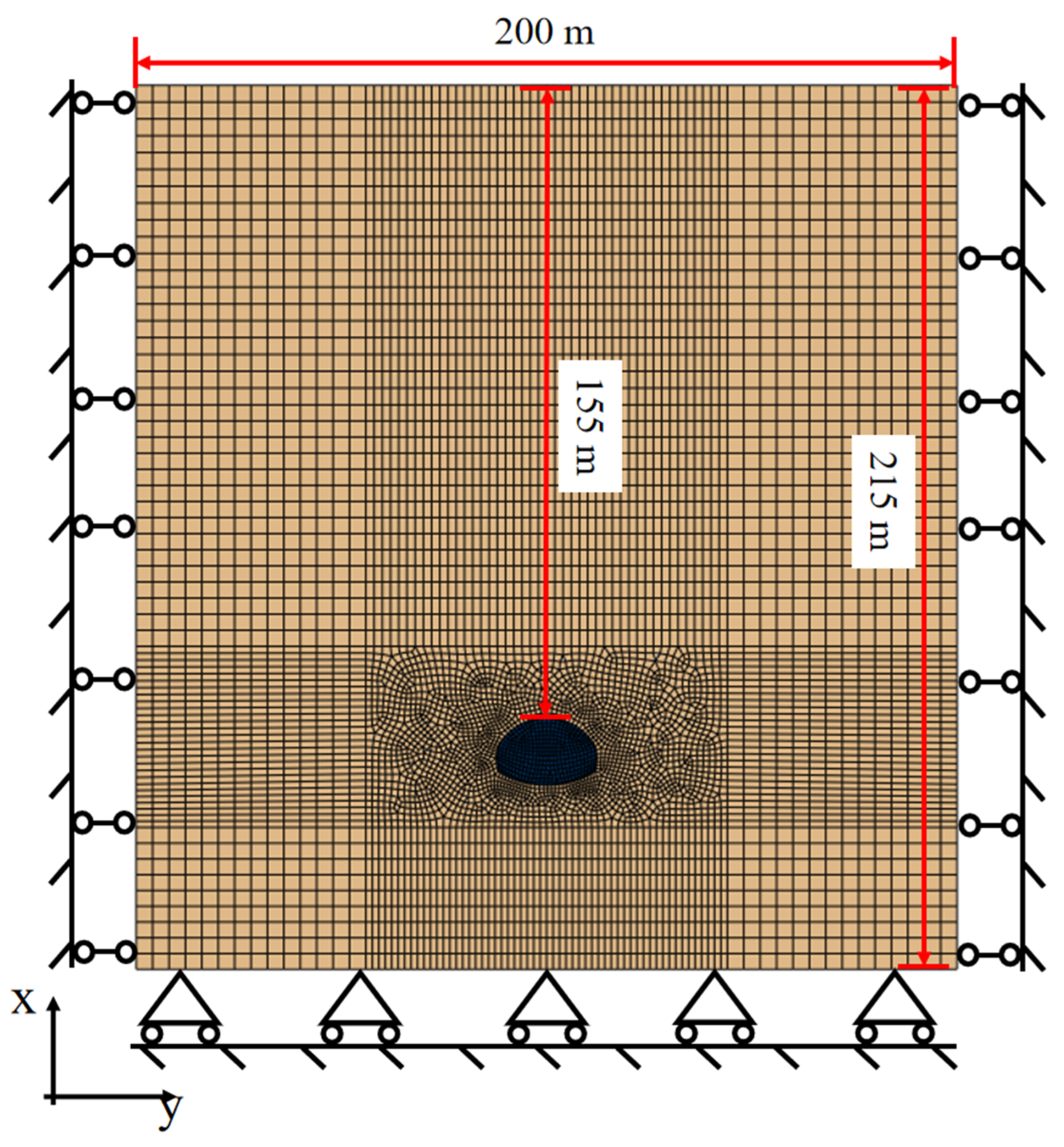 - Su, X.K. Study on the determination of boundary ranges for surrounding rock in tunnel excavation numerical simulations. J. Railw. Eng. Sci. 2012, 29, 64–68. [Google Scholar]