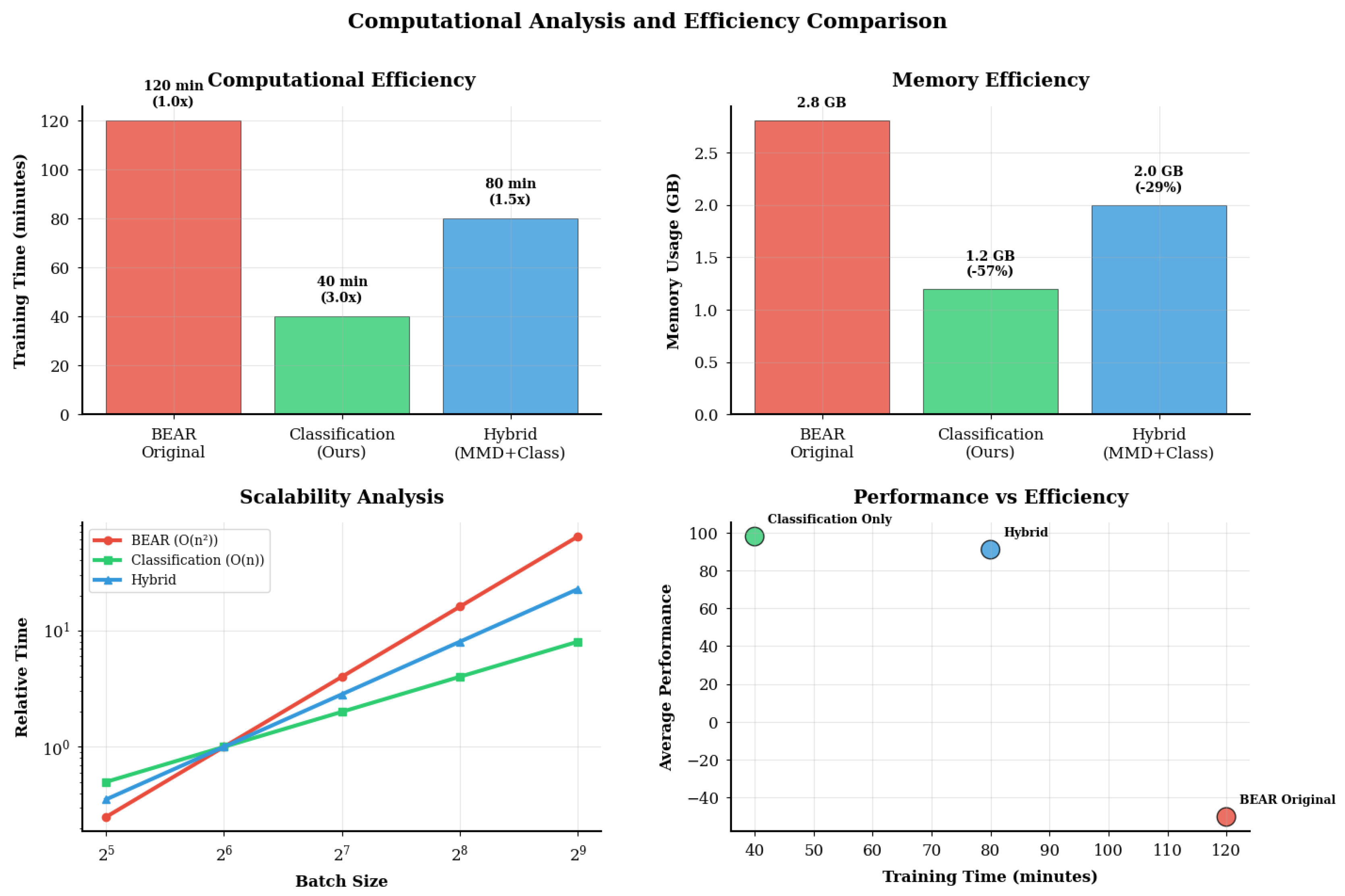 - Efficiency: Unlike MMD-based methods with complexity, the proposed approach operates in linear time.