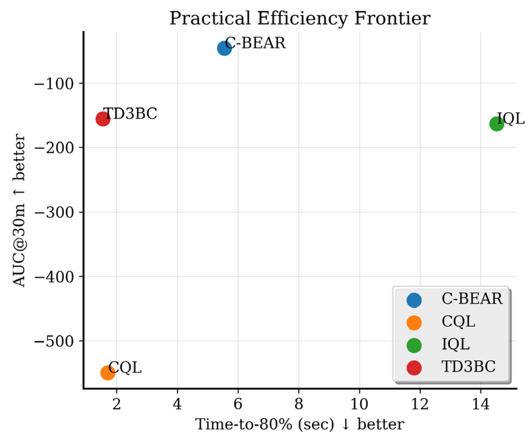 | IQL | 110.24 | 0.137 | 1.598 | 0.400 ± 0.000 | |
