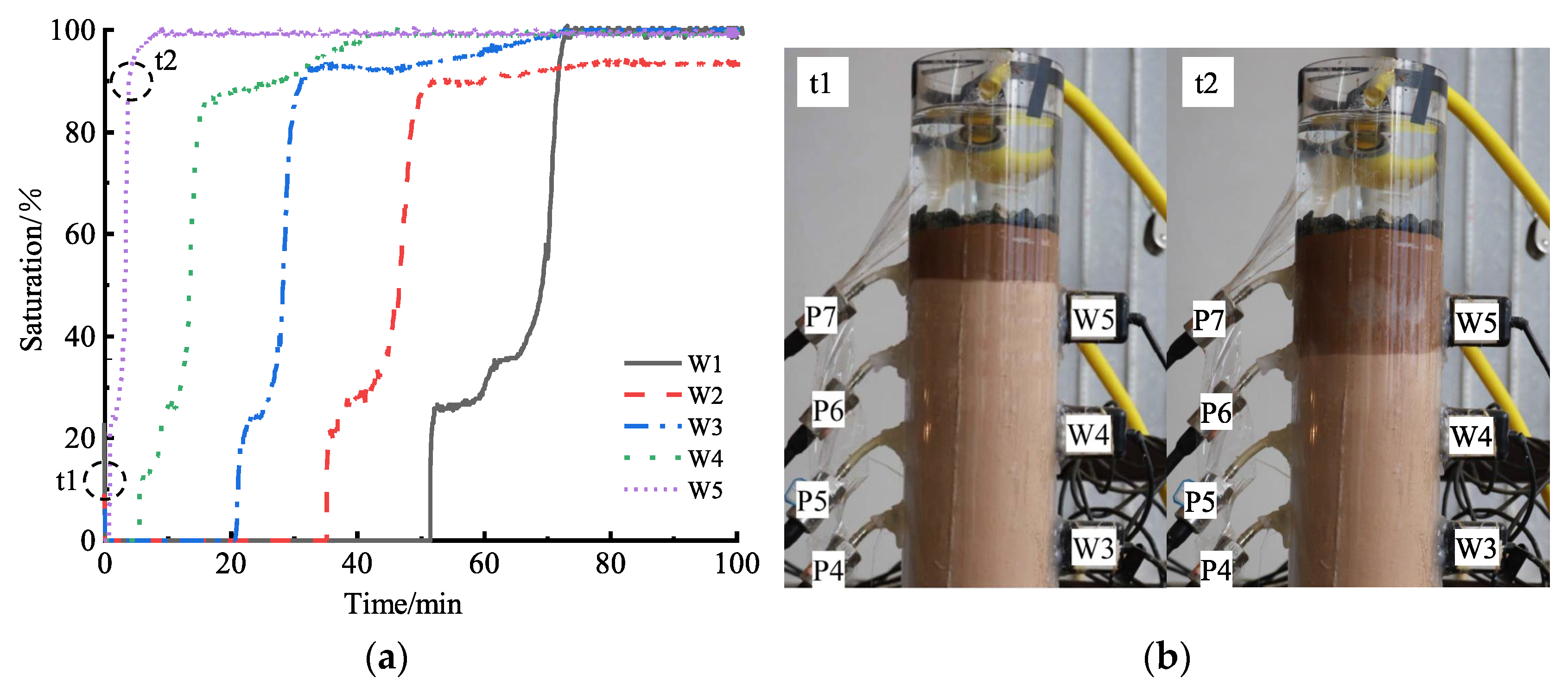 3.4. Effect of Different Initial Saturation Levels on Infiltration