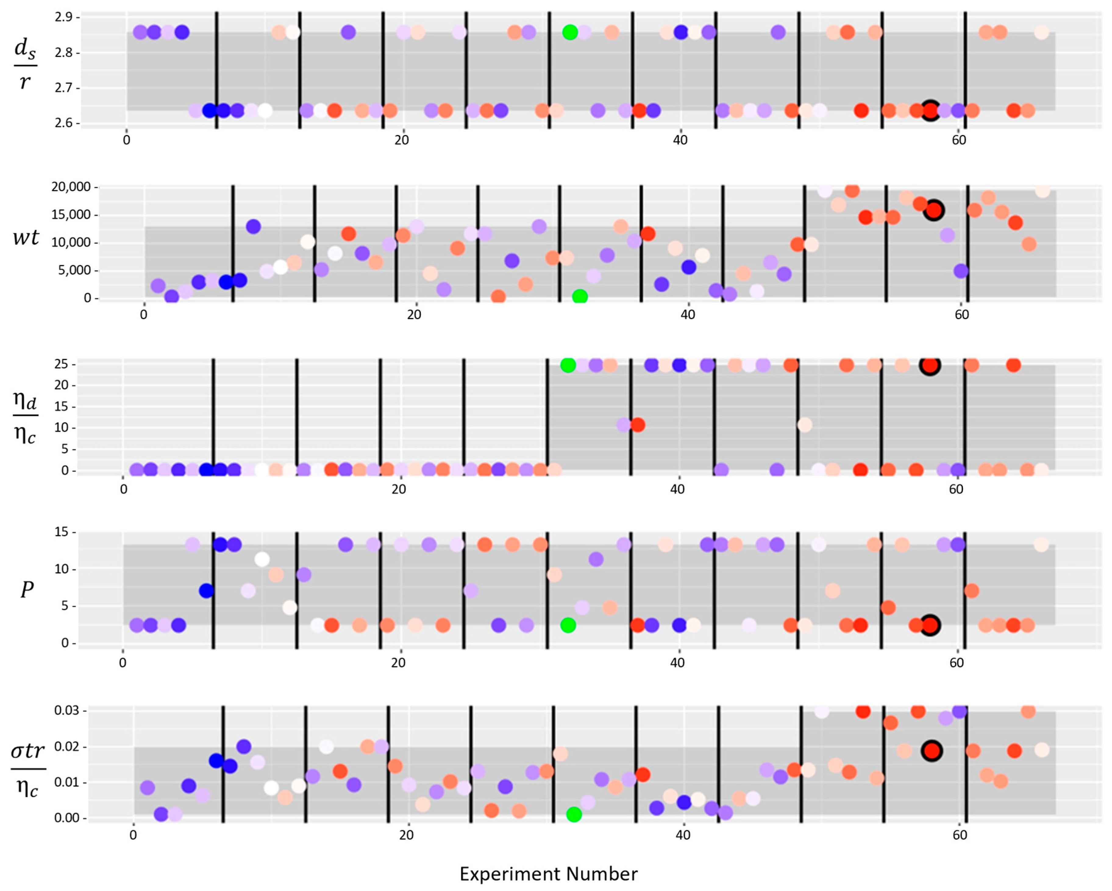 3.2. Batch Bayesian Optimisation for Dimensionless Number Analysis and Particle Diameter Minimisation