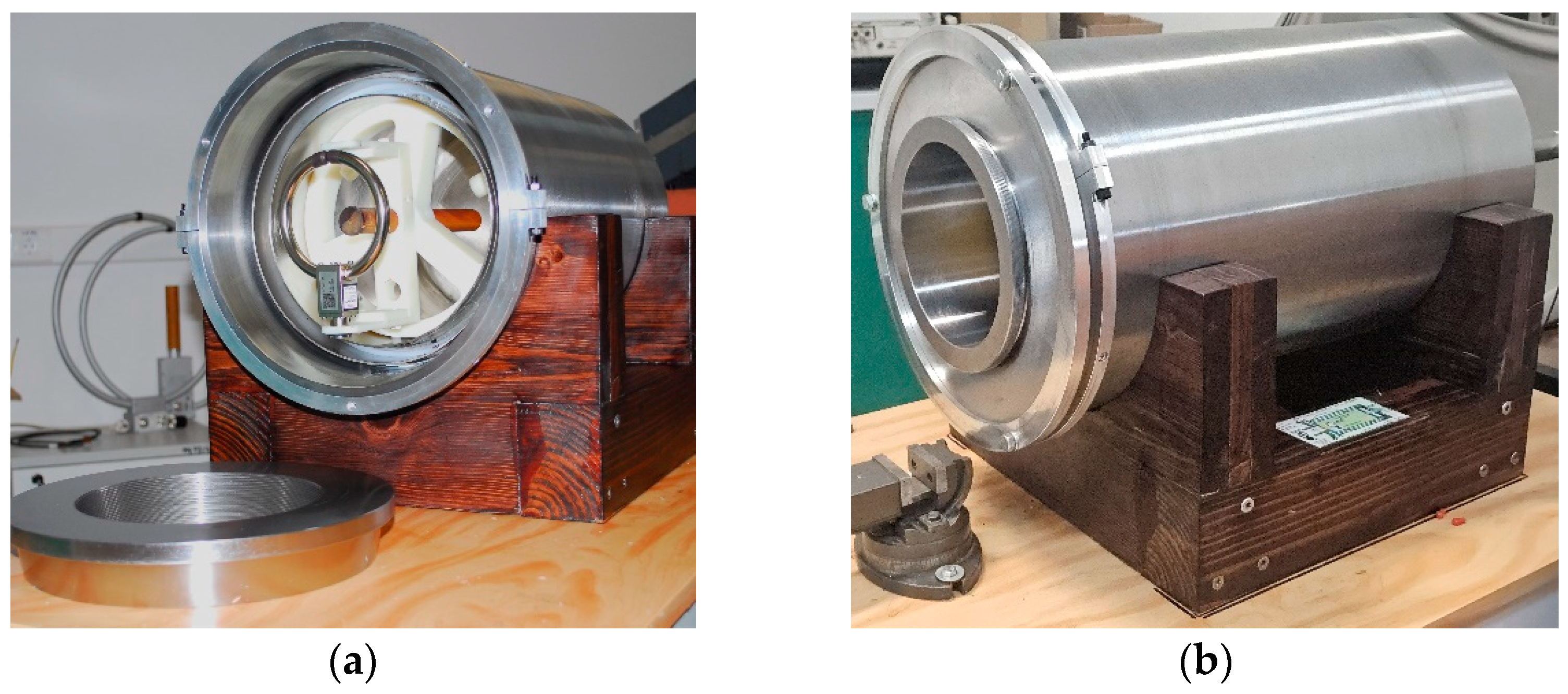 - Kornack, T.W.; Smullin, S.J.; Lee, S.-K.; Romalis, M.V. A low-noise ferrite magnetic shield. Appl. Phys. Lett. 2007, 90, 223501. [Google Scholar] [CrossRef]