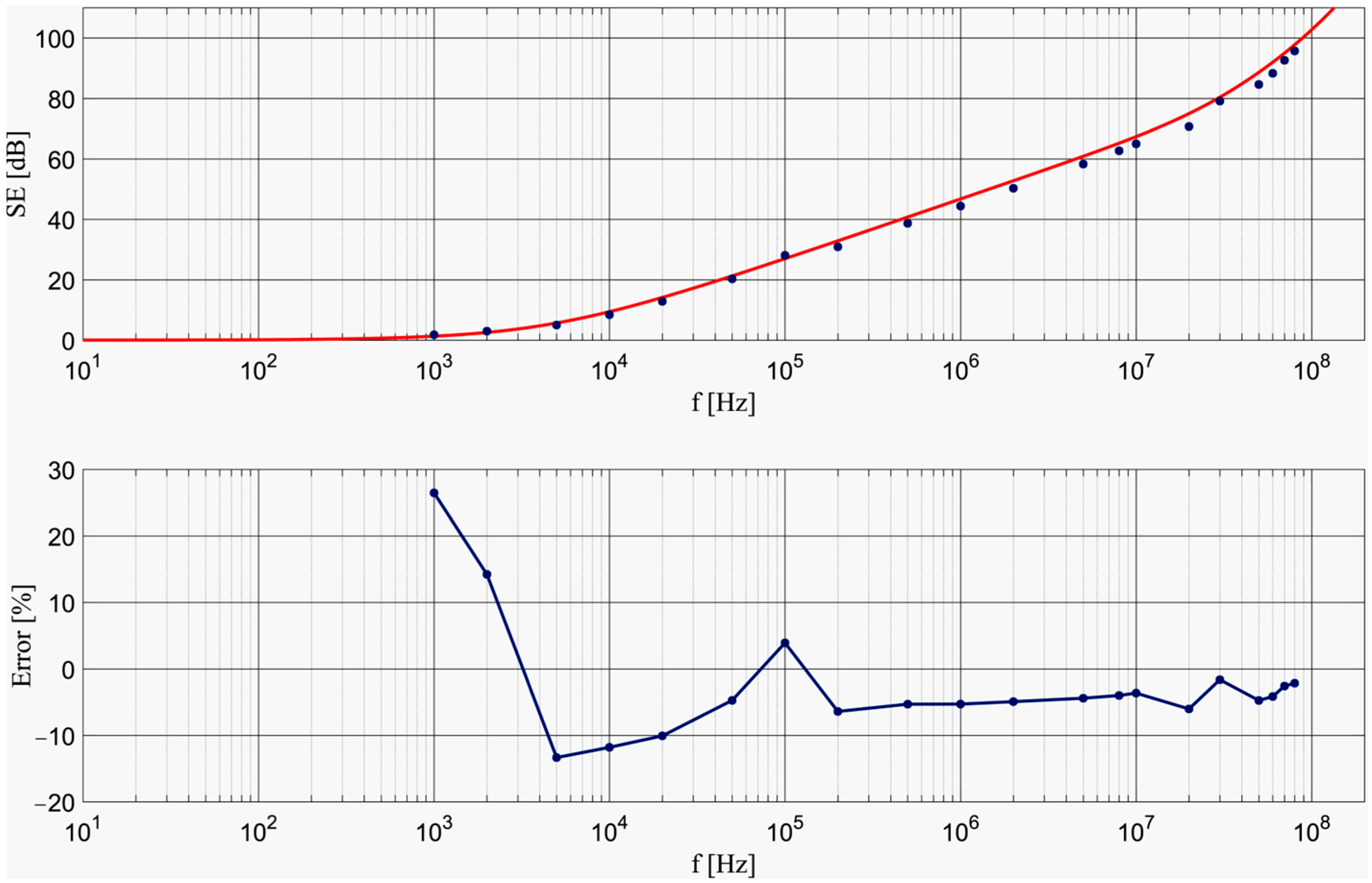 | SE_H [dB] (measured) | 13.53 | 19.80 | 29.10 | 32.00 | 37.20 | 44.00 | 47.70 | 49.40 | 54.50 | 56.80 | 64.10 | 63.50 | 66.20 | 67.10 |
