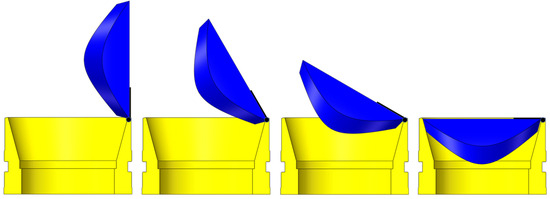 In actual operation, the valve seat remains stationary while the valve cover rotates on its hinge. This movement brings the two components into full contact, forming an effective seal, and the complete process is illustrated in Figure 8. The essence of its spatial geometric motion is the intersection of a cone and a cylindrical ring, where the intersecting line defines a curved surface that undergoes rotational motion in the spatial coordinate system. This research analyzes the spatial rotation of the curved sealing surface on the valve cover, which is defined by complex intersection lines. The goal is to prevent geometric interference and ensure the controller closes smoothly.