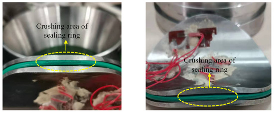 (3) A dedicated sealing test system was designed in accordance with the operational principles of the pressure controller to evaluate its sealing performance. Hydraulic tests conducted using this system indicated leakage initiation at 23.5 MPa, a result closely aligned with simulation predictions. Further analysis of seal ring failure mechanisms identified high-pressure extrusion as the dominant failure mode, attributed to excessive sealing clearance.