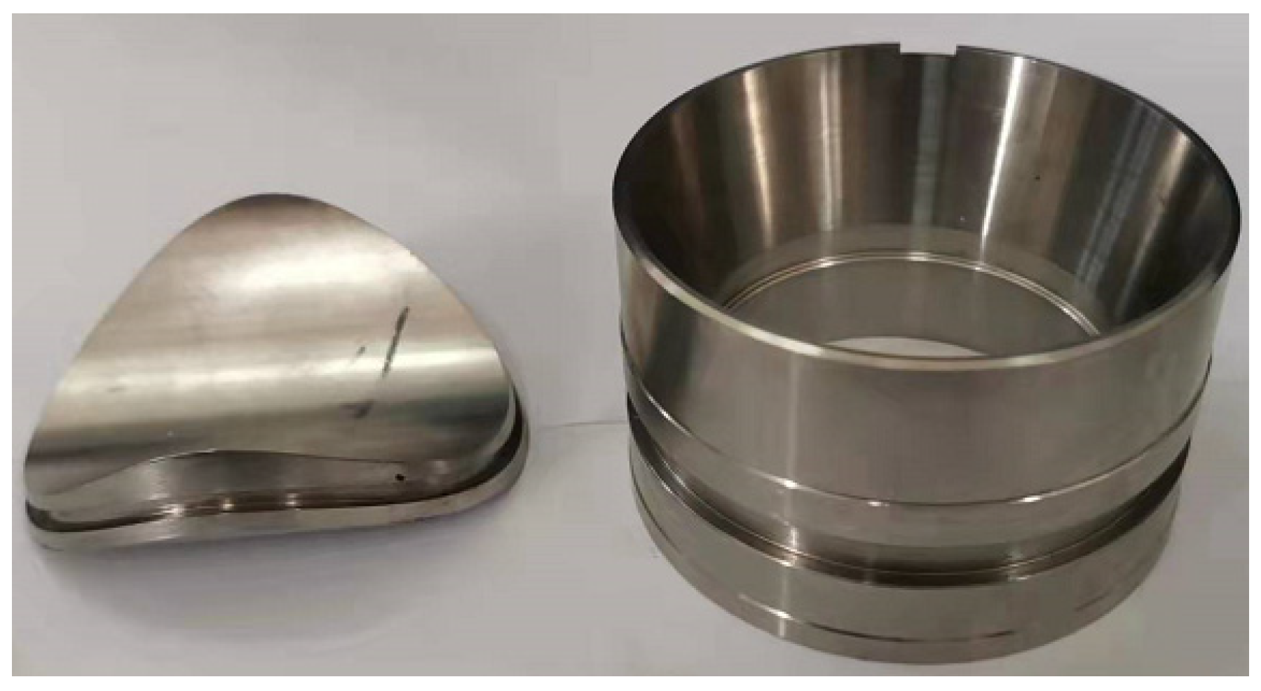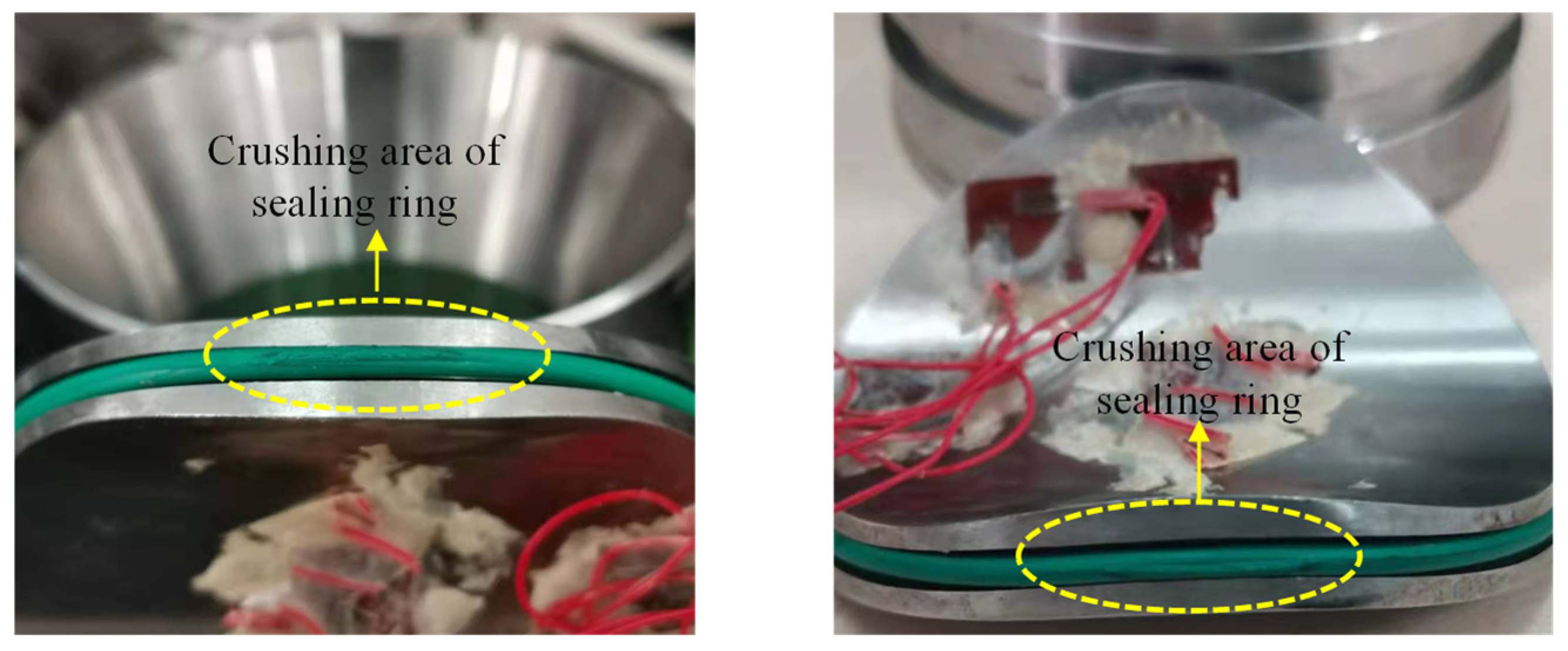 - Dong, X.; Zhou, F.; Jiang, W.; Xie, Y.; Zhang, Y.; Xie, X.; Zhai, X.; Lu, C.; Li, G.; Jiang, X. Failure analysis of the conical gaskets in ultra-high pressure pipeline sealing devices: Experiment and numerical simulation. Eng. Fail. Anal. 2022, 133, 105946. [Google Scholar] [CrossRef]