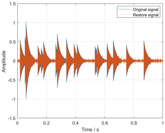 As shown in Figure 4, the waveform originally immersed in noise becomes much clearer after denoising, with significantly reduced noise interference. Compared with the original signal, the denoised signal retains the main features of the original waveform, such as periodic variations and fault-related components, while effectively suppressing noise. These results indicate that the proposed WOA-VMD-Tucker method can efficiently integrate multi-channel information, achieving both noise reduction and feature preservation.