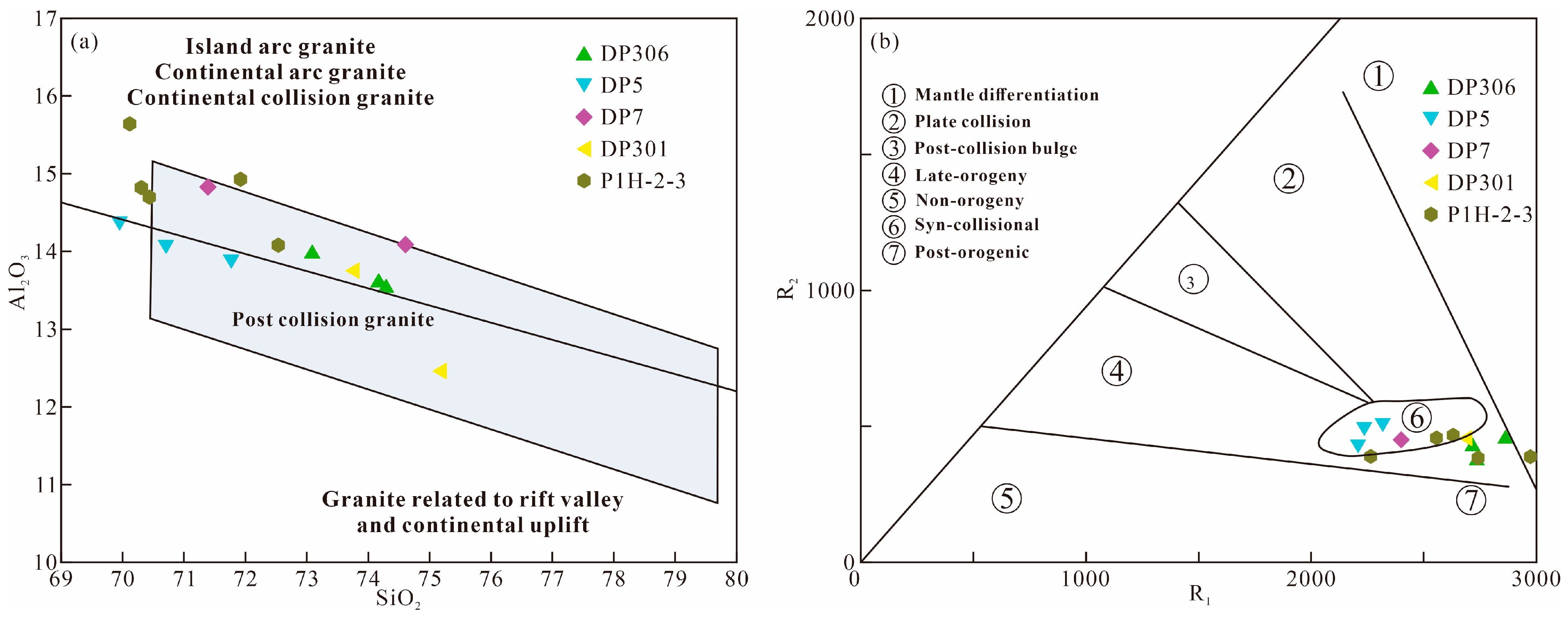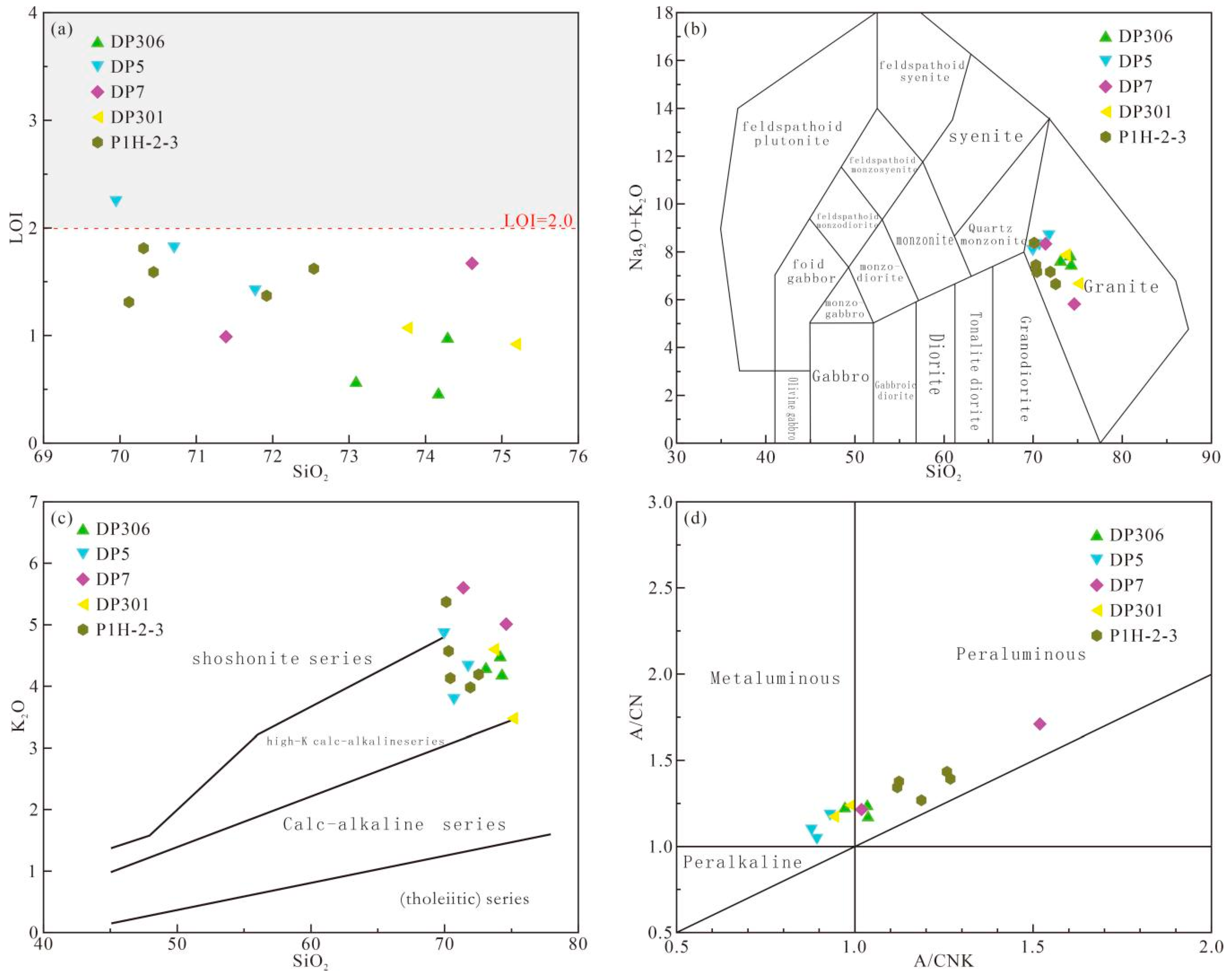 - Maniar, P.D.; Piccoli, P.M. Tectonic discrimination of granitoids. Geol. Soc. Am. Bull. 1989, 101, 635–643. [Google Scholar] [CrossRef]