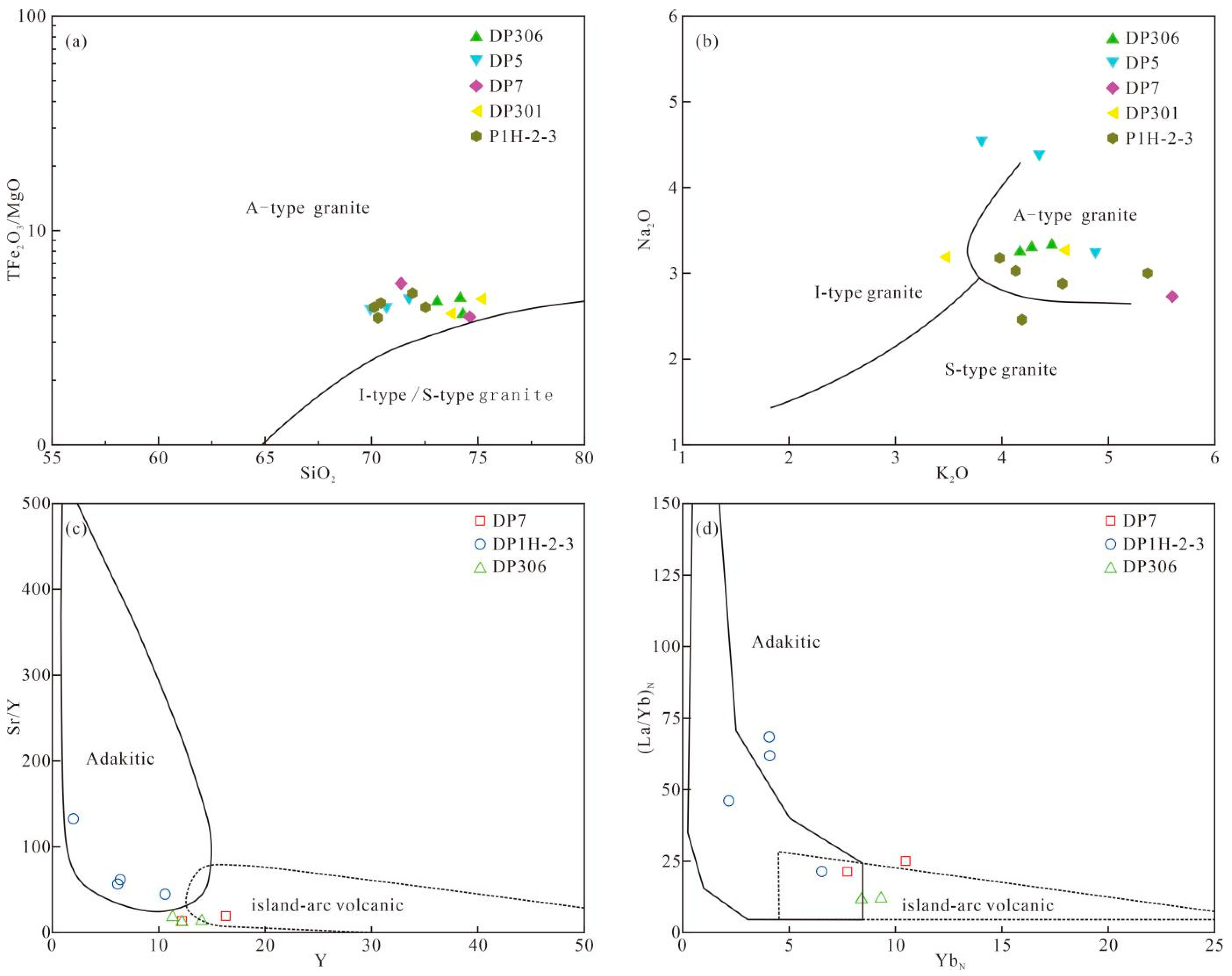 - Whalen, J.B.; Currie, K.L.; Chappell, B.W. A-type granites: Geochemical characteristics, discrimination and petrogenesis. Contrib. Mineral. Petrol. 1987, 95, 407–419. [Google Scholar] [CrossRef]