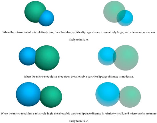 The micro-modulus of contacts affects the allowable dislocation distance of particles.