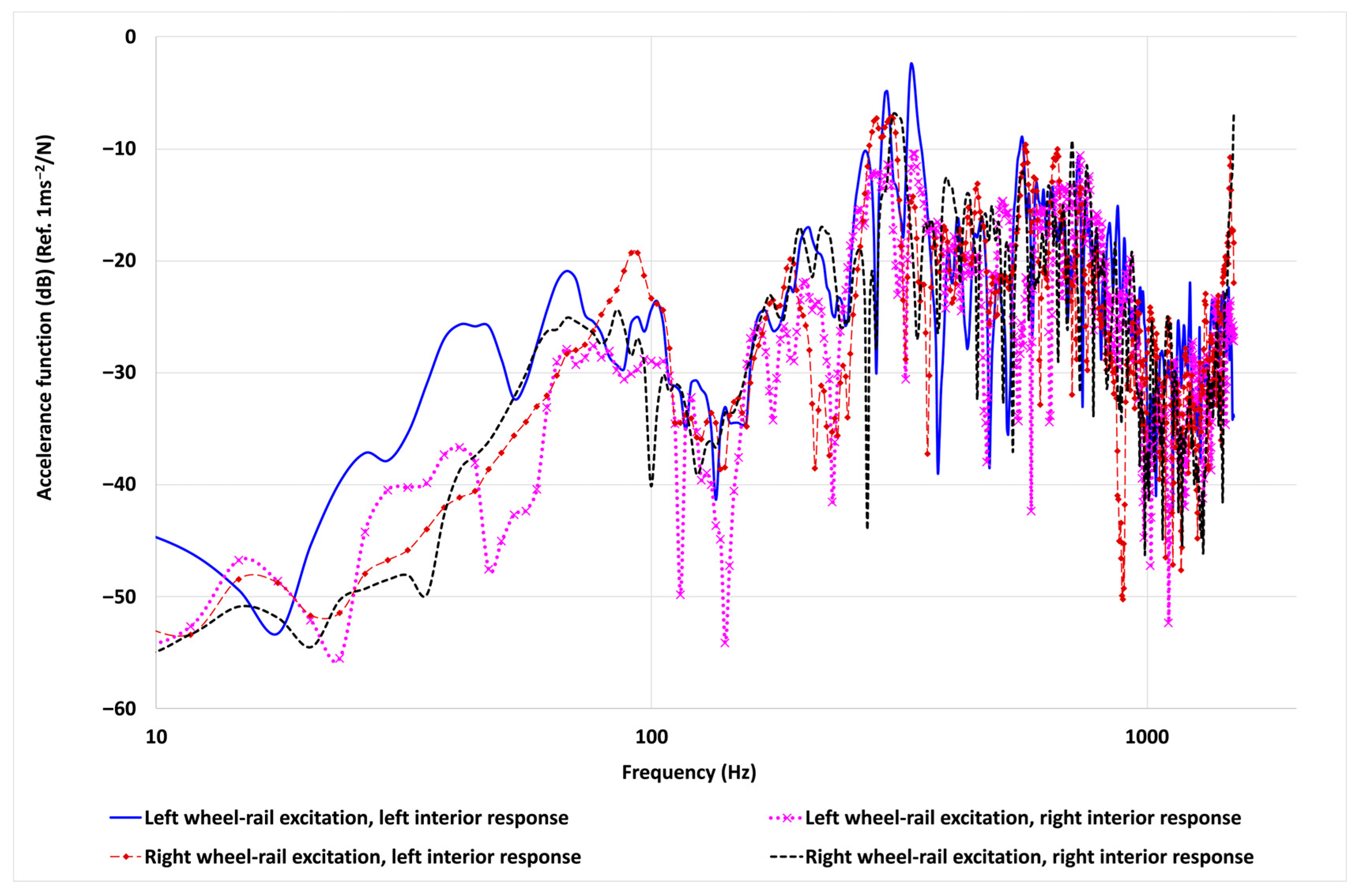 2.1.2. The Relationship Between the Wheel–Rail Force and Vehicle Interior Responses