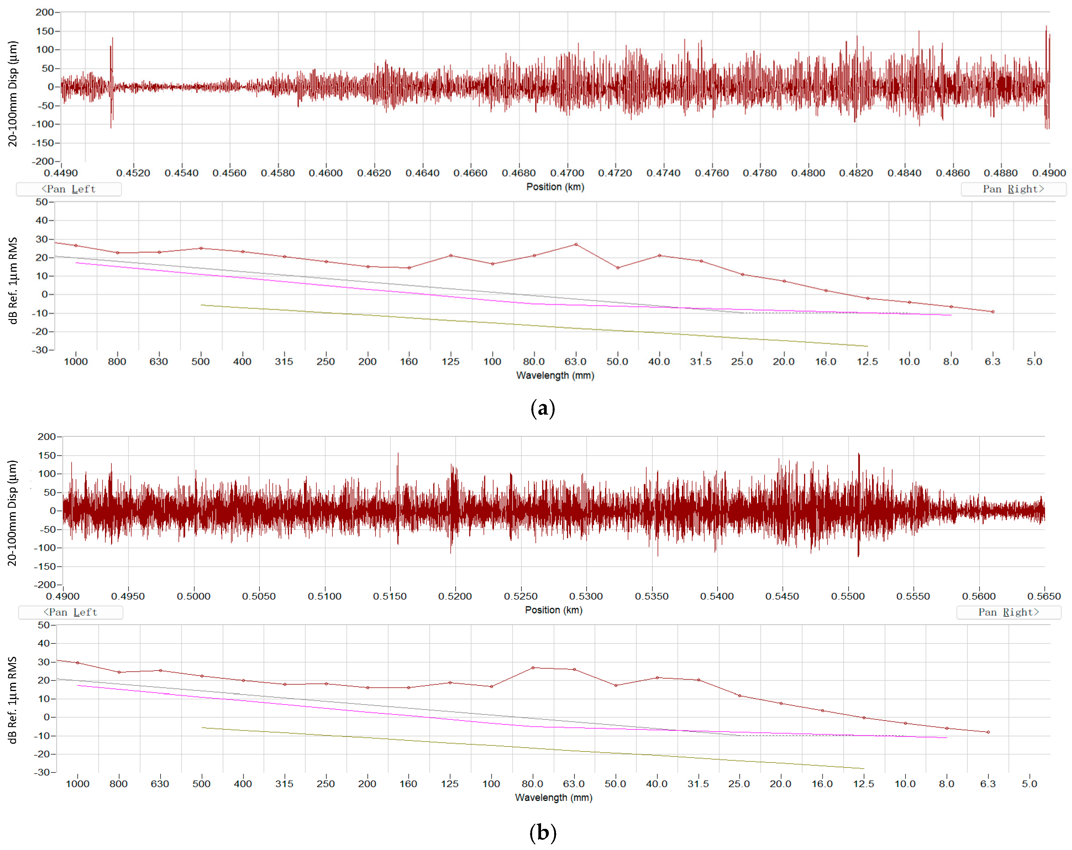 - Gu, X.P.; Han, Y.; Shi, J.; Wang, A. Rail Corrugation Characteristics Deduced from a Wavelet Analysis of High-Speed Train Interior Noise and Vibration. Shock. Vib. 2024, 2024, 8810338. [Google Scholar] [CrossRef]