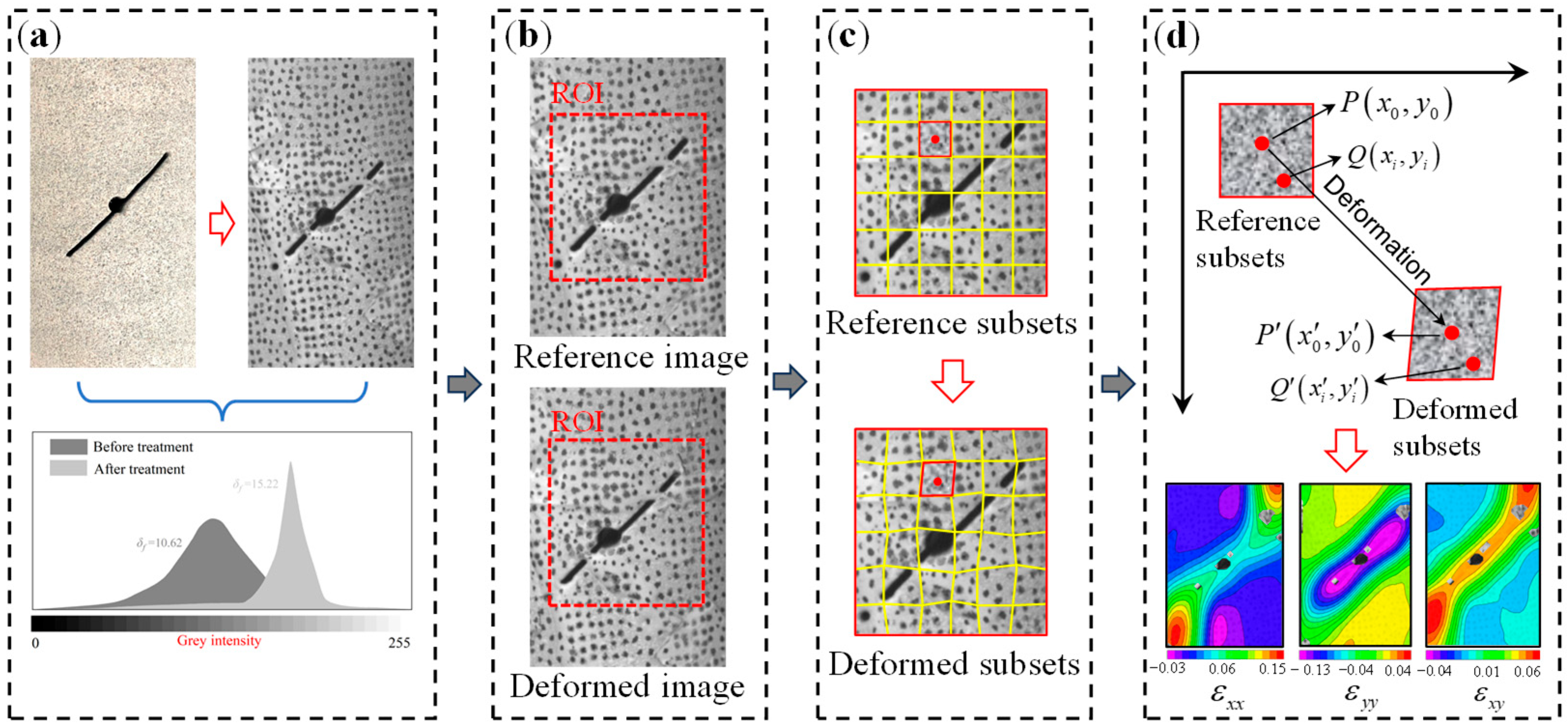44] conducted uniaxial compression tests on 3D-printed sandstone specimens featuring varied intermittent aperture densities, analyzing damage evolution processes using DIC monitoring results. Dong et al. [