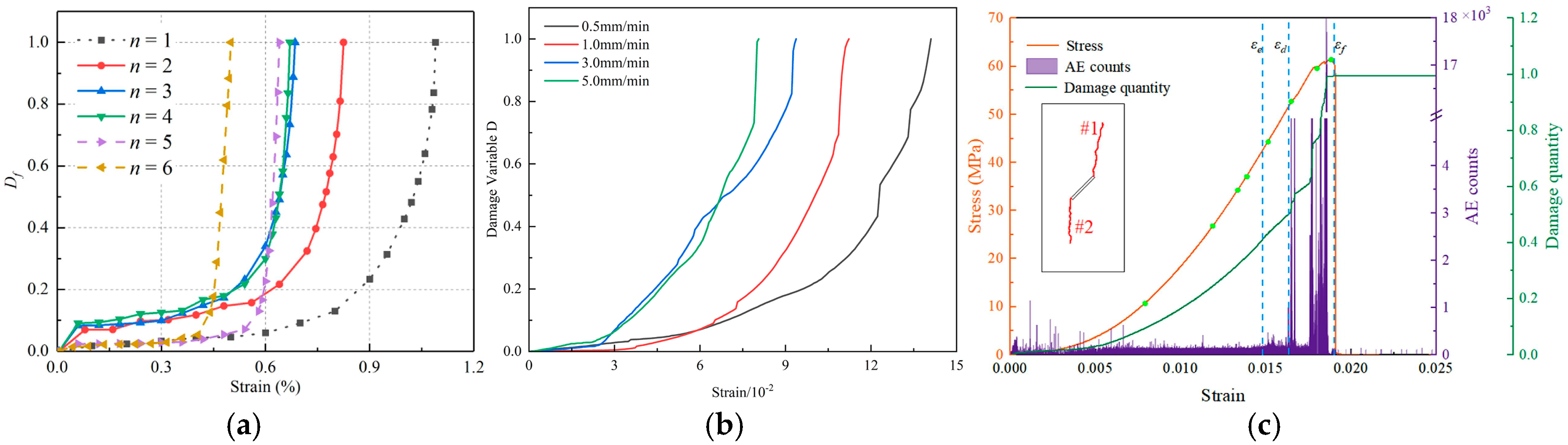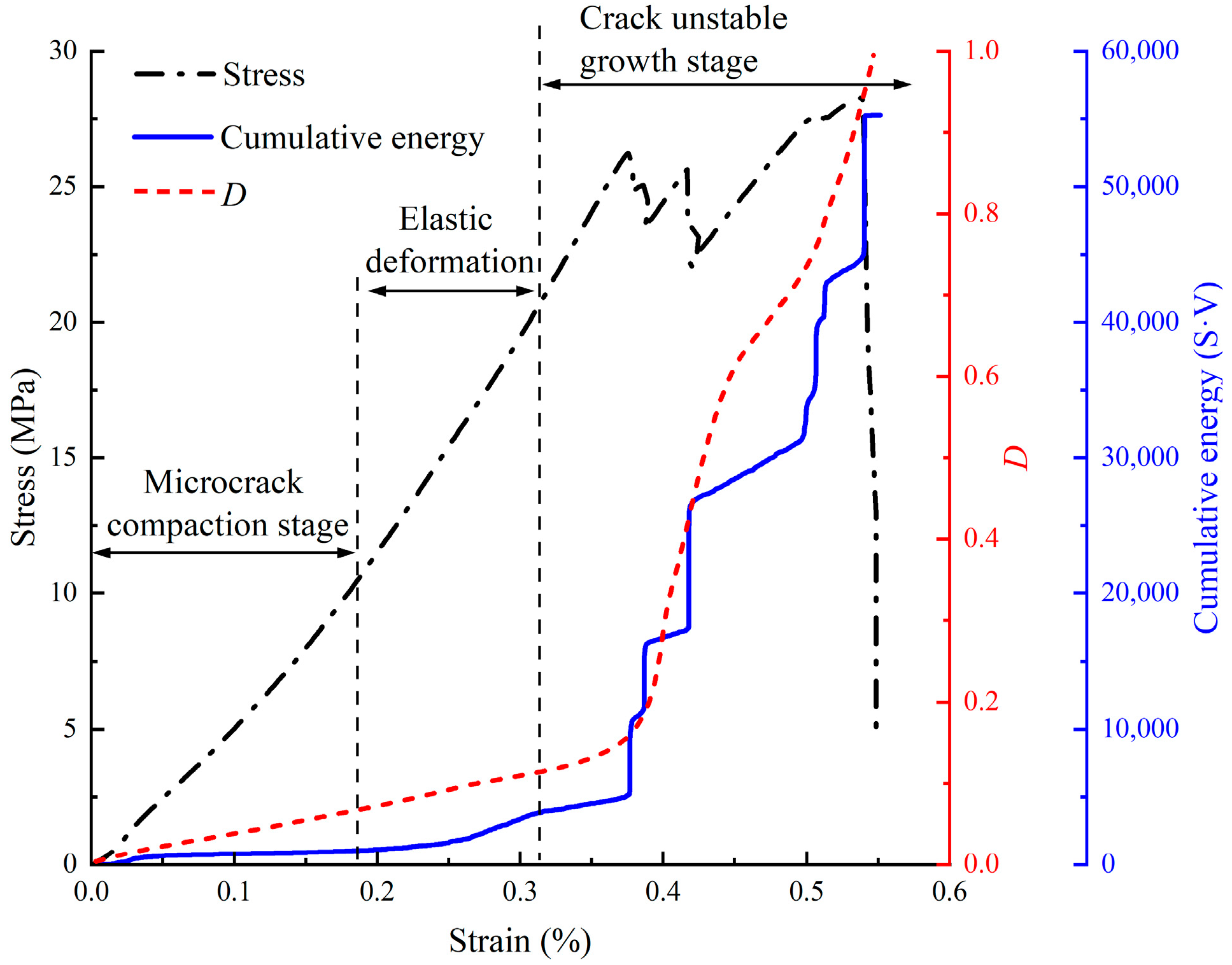 46] established a loss-damage constitutive model through AE energy analysis during uniaxial compression tests on fractured rocks under diverse loading rates, quantitatively describing deformation and damage processes.