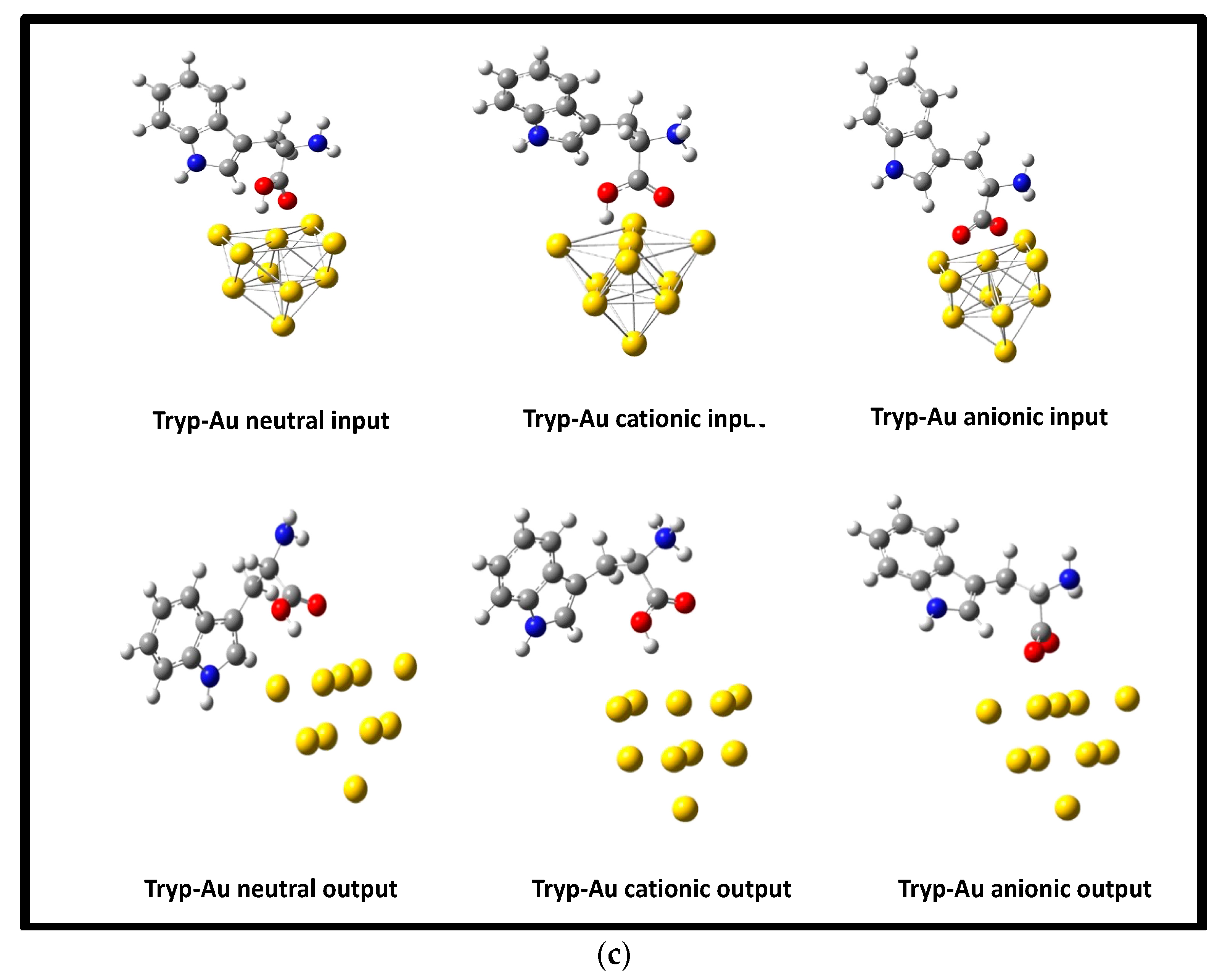 3.2. Optimization of Geometries of L-Tryp on NP Substrate Models
