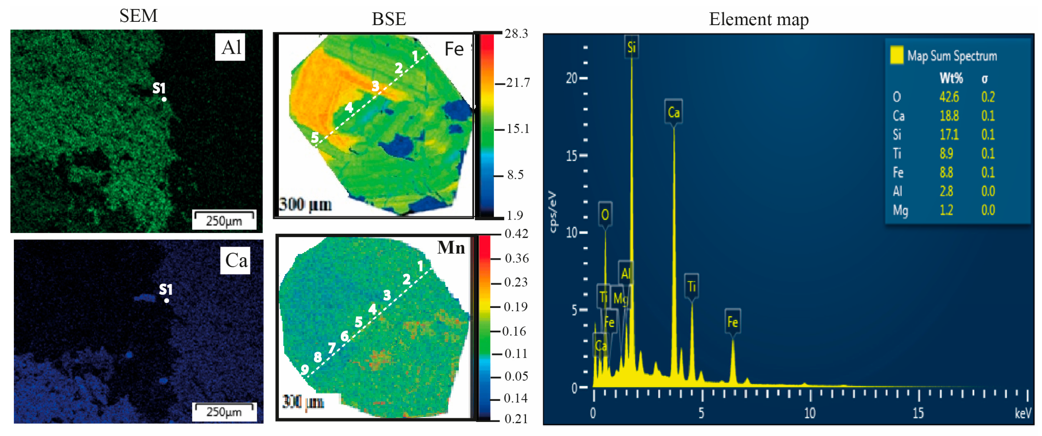 - Fei, X.; Zhang, Z.; Cheng, Z.; Santosh, M. Factors controlling the crystal morphology and chemistry of garnet in skarn deposits: A case study from the Cuihongshan polymetallic deposit, Lesser Xing’an Range, NE China. Am. Miner. 2019, 104, 1455–1468. [Google Scholar] [CrossRef]