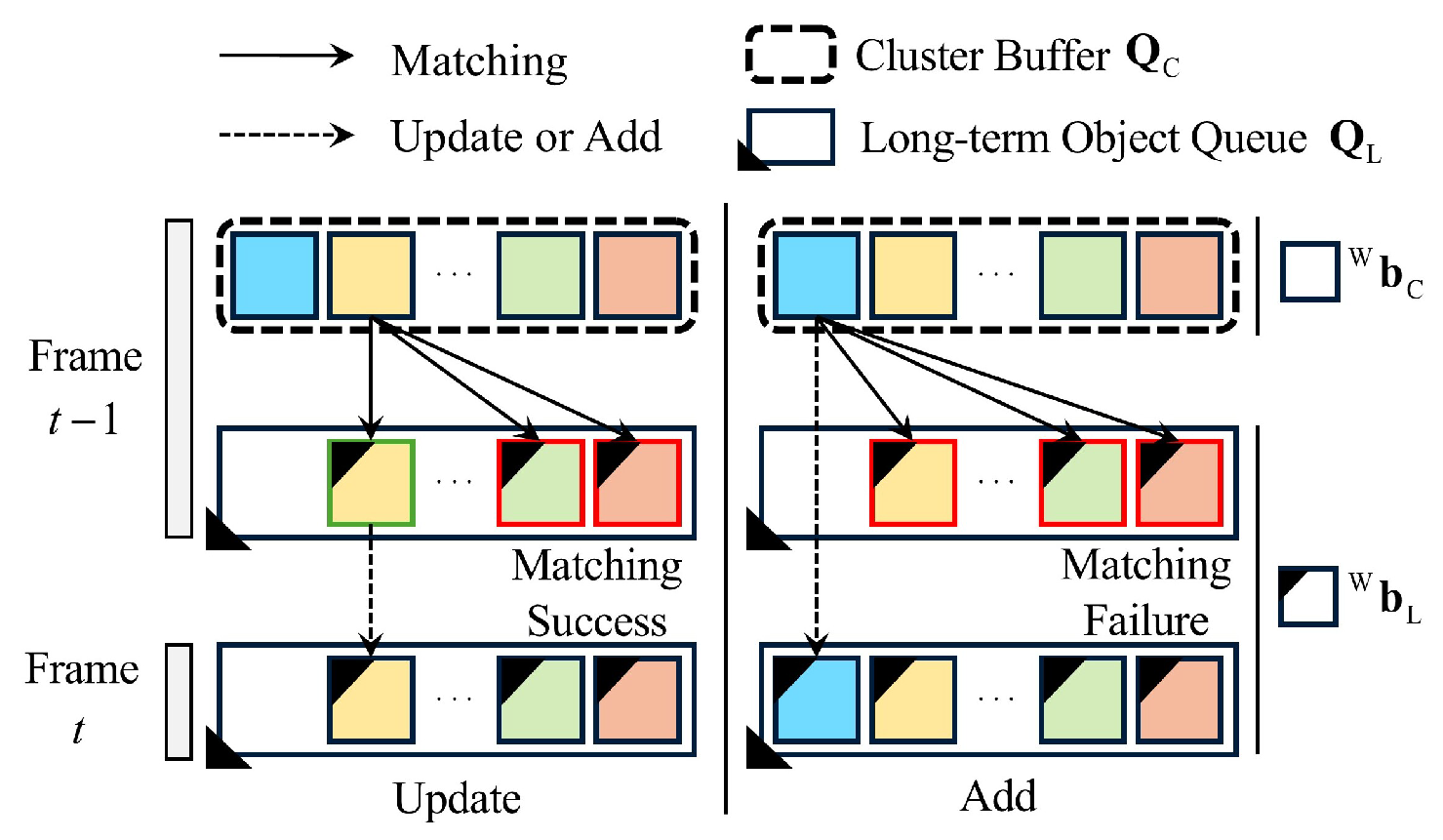 between the cluster buffer and long-term object queue is set to 2.0 m. Long-term object queue update weight