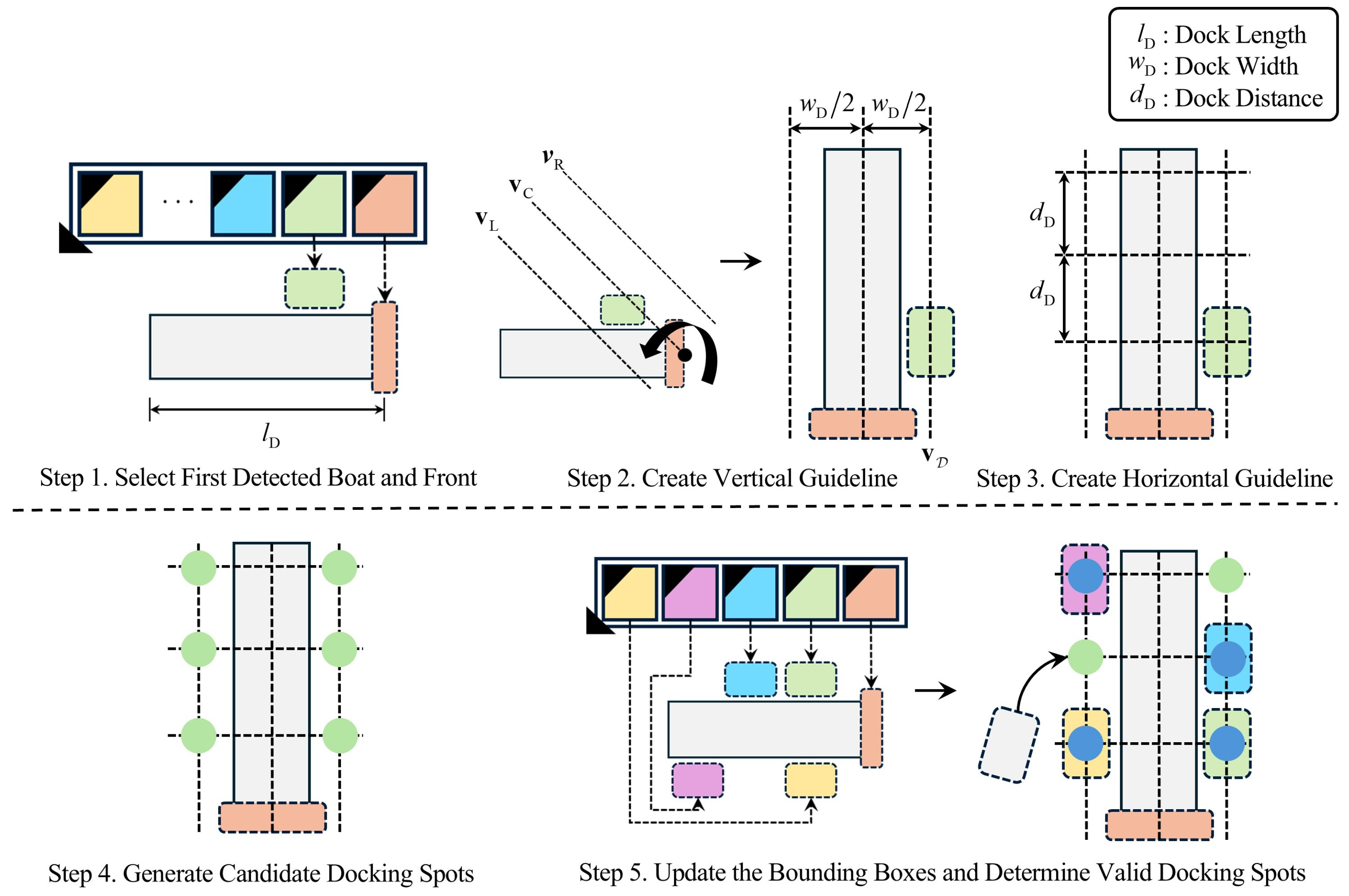 Figure 15 visualizes the DSG results for the model with RFS, confirming that the system can reliably generate autonomous docking spots in real-world environments. A detailed visualization of the complete LP-DSG system workflow is provided in