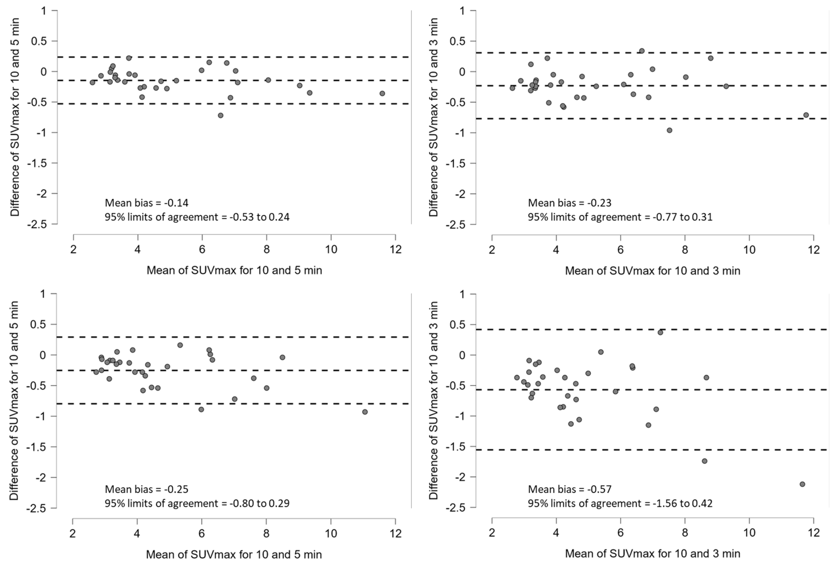 - Weber, M.; Jentzen, W.; Hofferber, R.; Herrmann, K.; Fendler, W.P.; Rischpler, C.; Umutlu, L.; Conti, M.; Costa, P.F.; Sraieb, M.; et al. Evaluation of 18F-FDG PET/CT images acquired with a reduced scan time duration in lymphoma patients using the digital biograph vision. BMC Cancer 2021, 21, 62. [Google Scholar] [CrossRef]