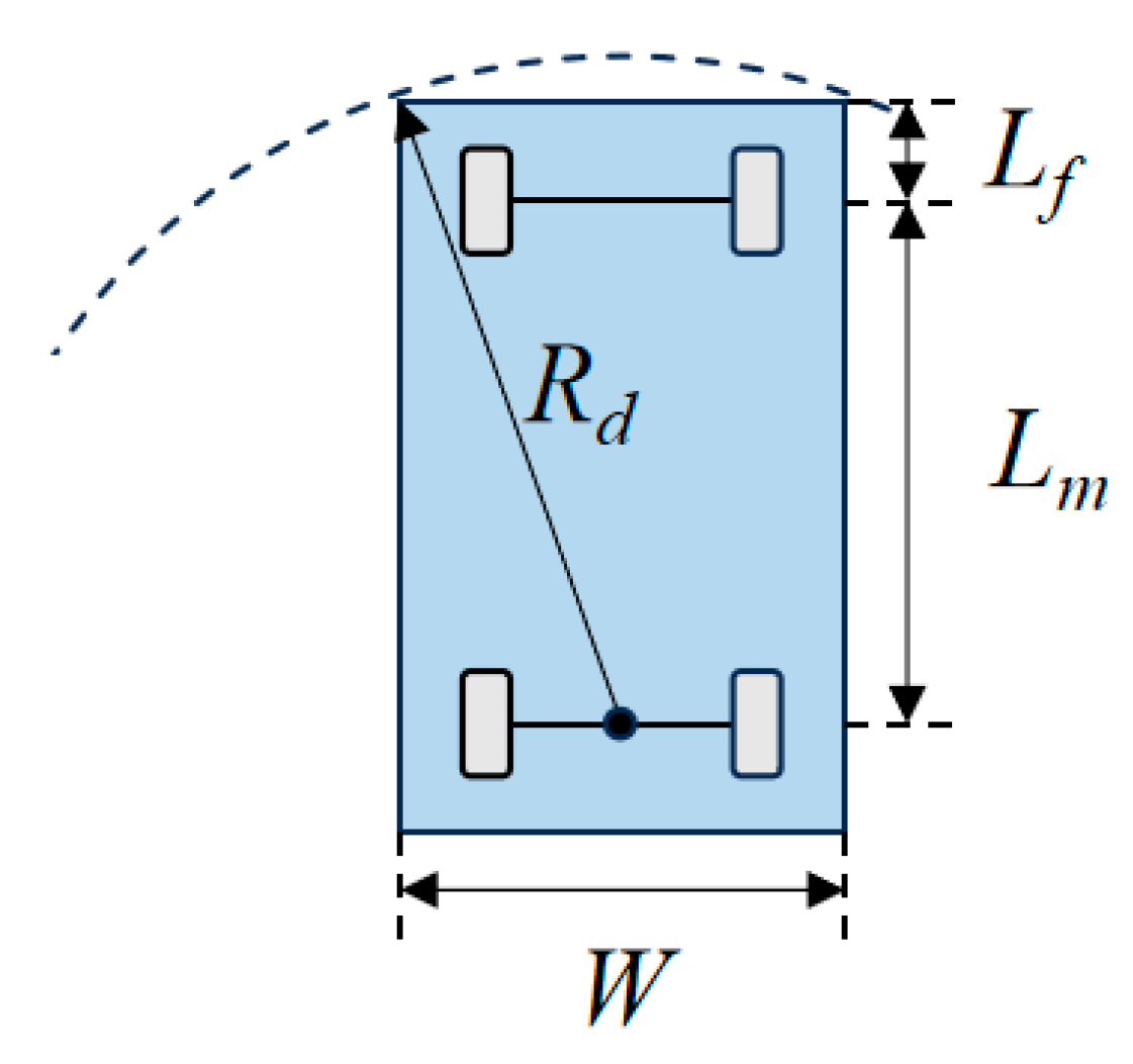(vehicle width). Based on the Ackermann kinematic constraints and the vehicle’s geometric configuration, the minimum turning radius
