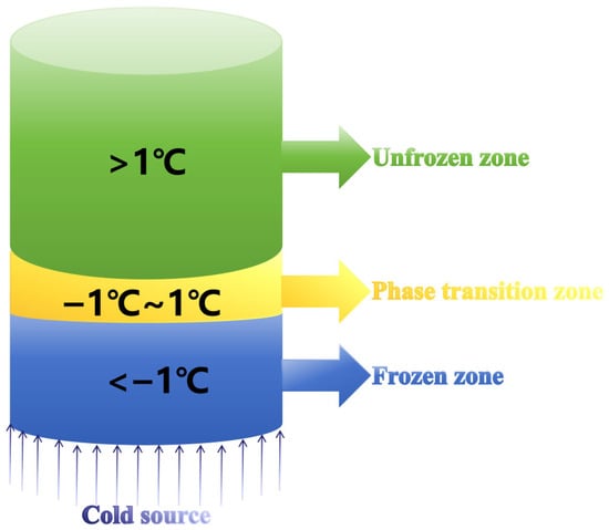 Schematic diagram of the division of each zone in one-dimensional soil column unidirectional freezing test.