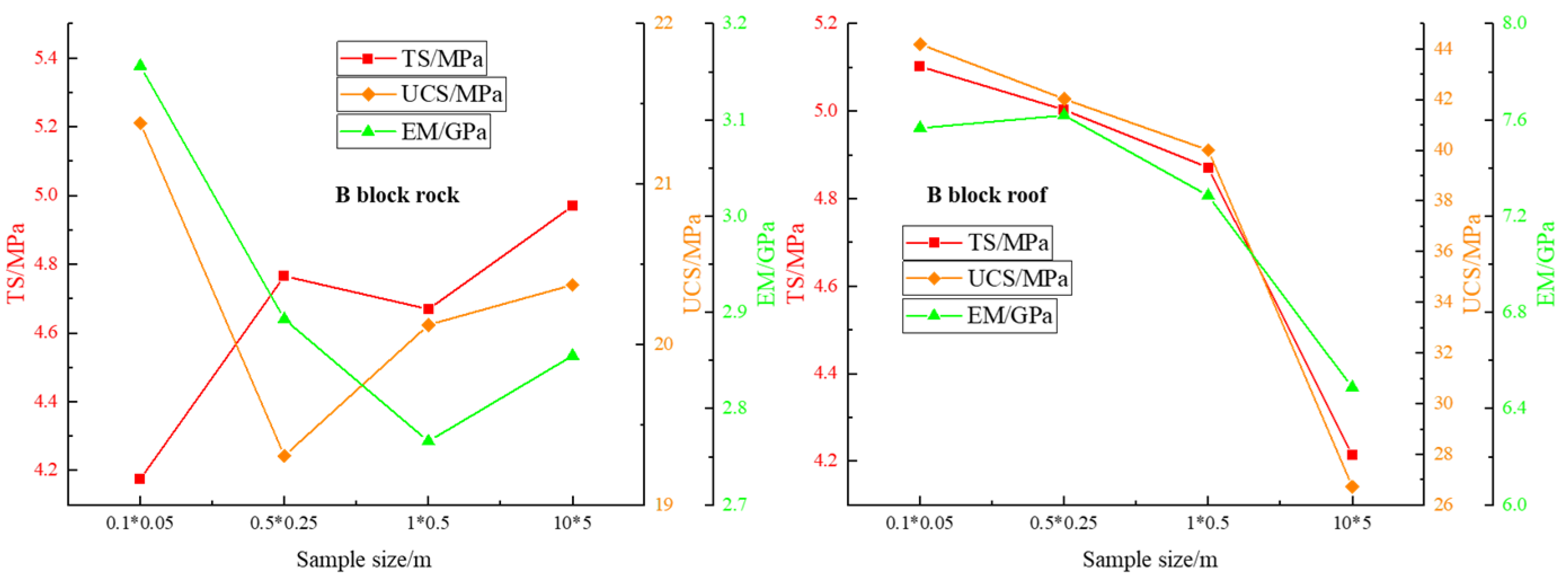 | Parallel bond cohesion strength | 9.05 MPa | 20.1 MPa |
