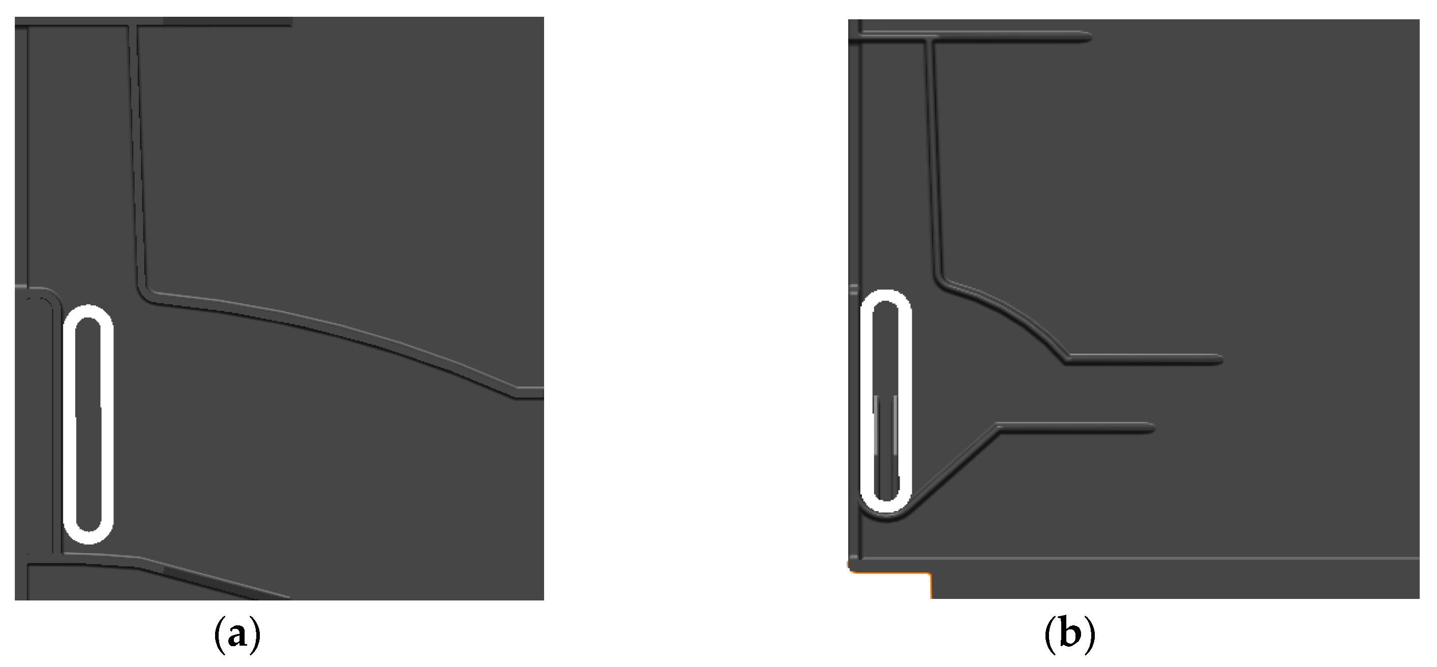 - Krantz, J.; Nieduzak, Z.; Licata, J.; O’Meara, S.; Gao, P.; Masato, D. In-mold rheology and automated process control for injection molding of recycled polypropylene. Polym. Eng. Sci. 2024, 64, 4112–4127. [Google Scholar] [CrossRef]