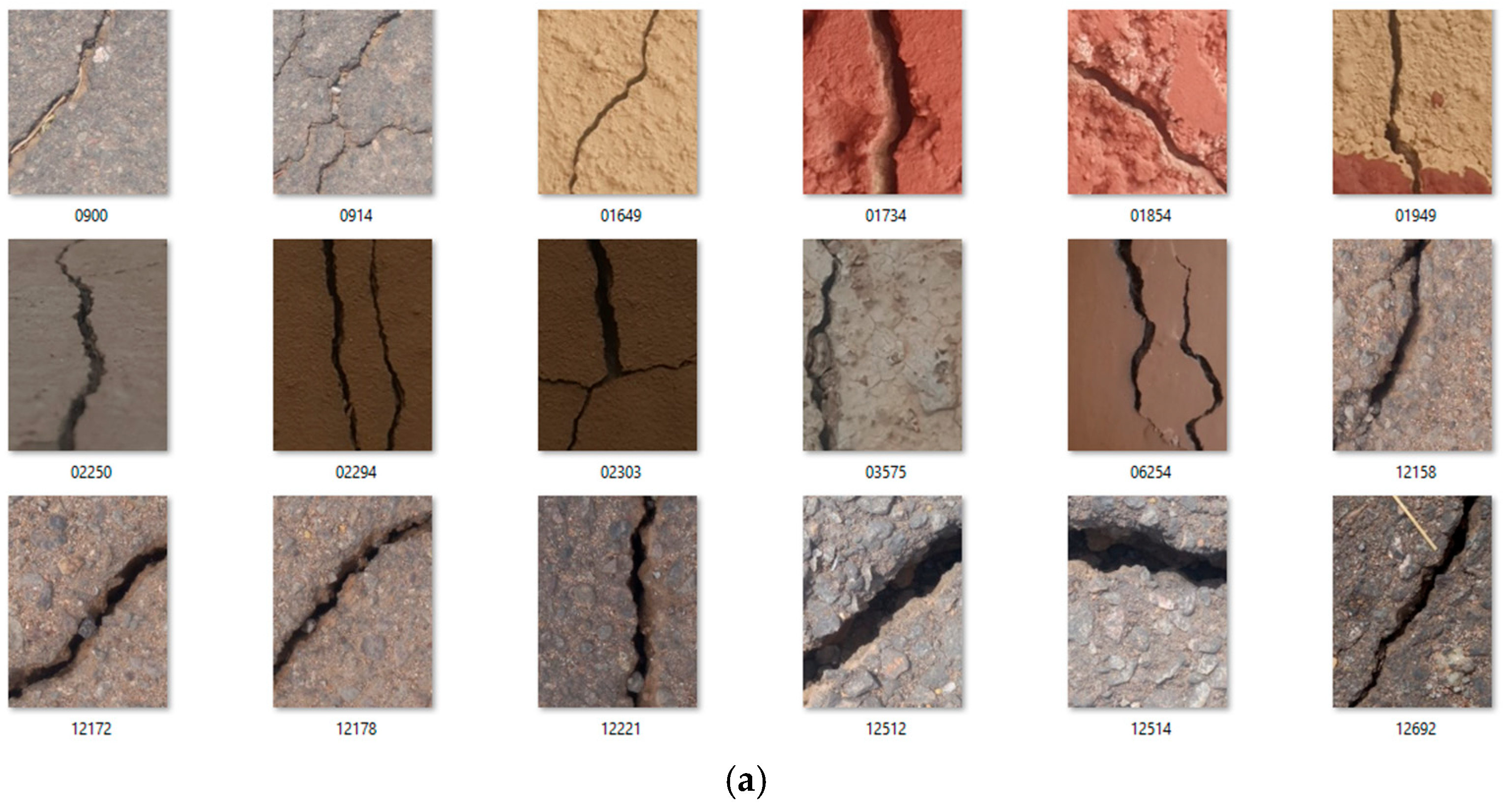 - Osman, M.K.; Mohammad, Z.E.A.; Idris, M.; Ahmad, K.A.; Muhamed, Y.N.A.; Ibrahim, A.; Hasnur, R.A.; Bahri, I. Pavement Crack Classification using Deep Convolutional Neural Network. J. Mech. Eng. 2021, 1, 227–244. [Google Scholar]
