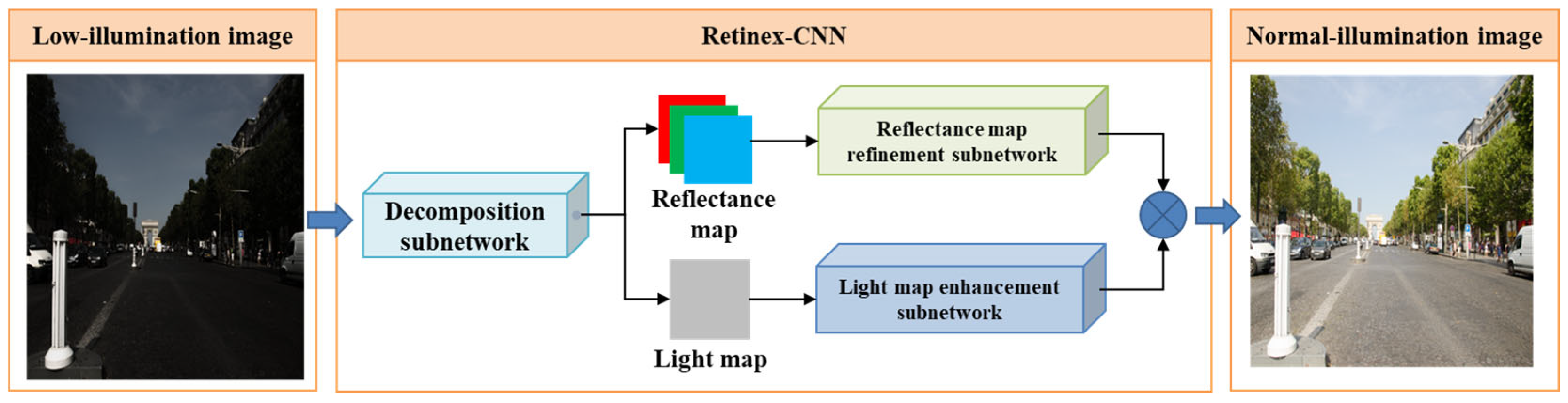 - Lei, C.; Tian, Q. Low-light image enhancement algorithm based on deep learning and Retinex theory. Appl. Sci. 2023, 13, 10336. [Google Scholar] [CrossRef]