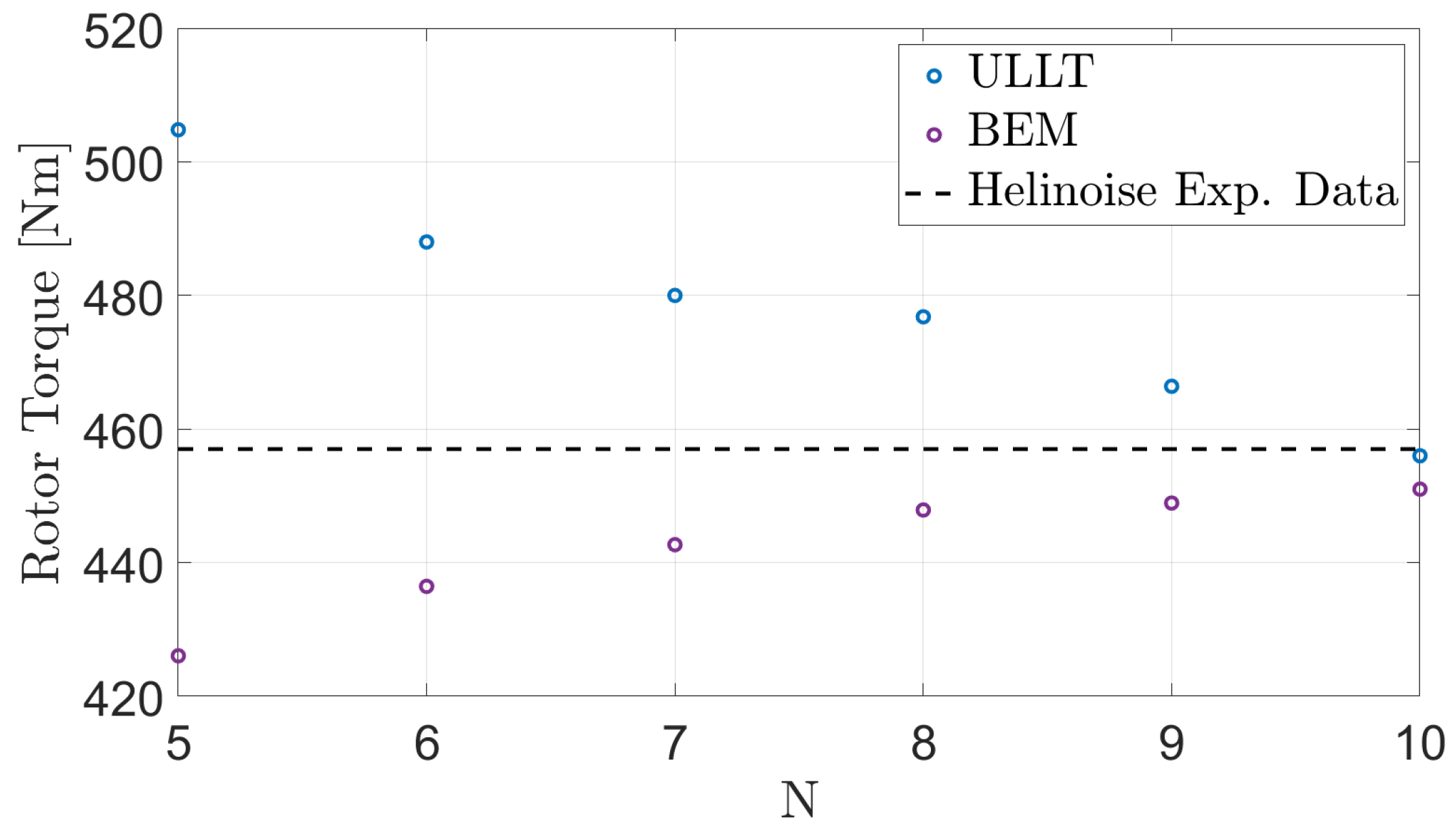- Gennaretti, M.; Luceri, L.; Morino, L. A Unified Boundary Integral Methodology for Aerodynamics and Aeroacoustics of Rotors. J. Sound Vib. 1997, 200, 467–489. [Google Scholar] [CrossRef]