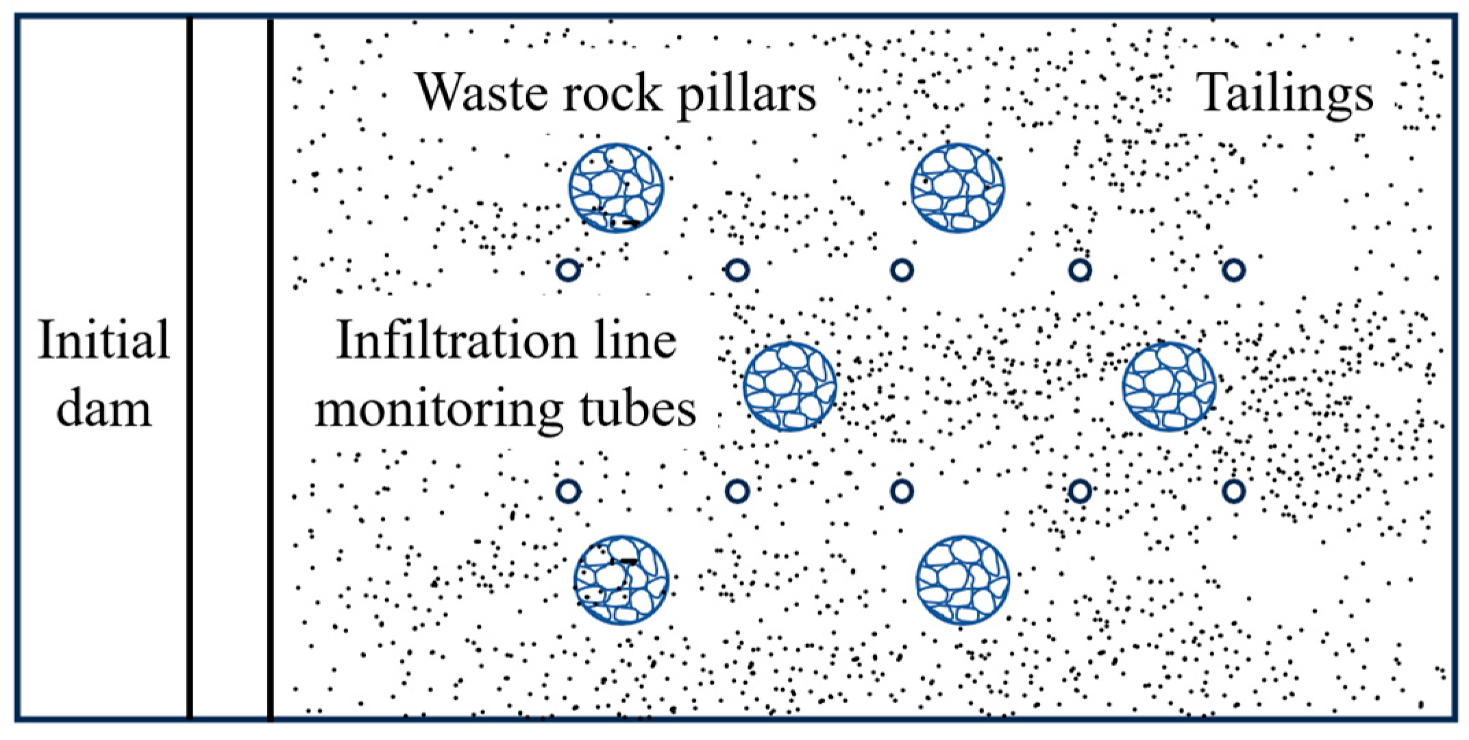 Wu, S.; Zhao, B.; Lan, R.; Liu, M. Research on the Stability of Tailings Dams Under the Combined Stacking of Waste Rock Pillars and Tailings. Appl. Sci. 2025, 15, 12348. https://doi.org/10.3390/app152312348