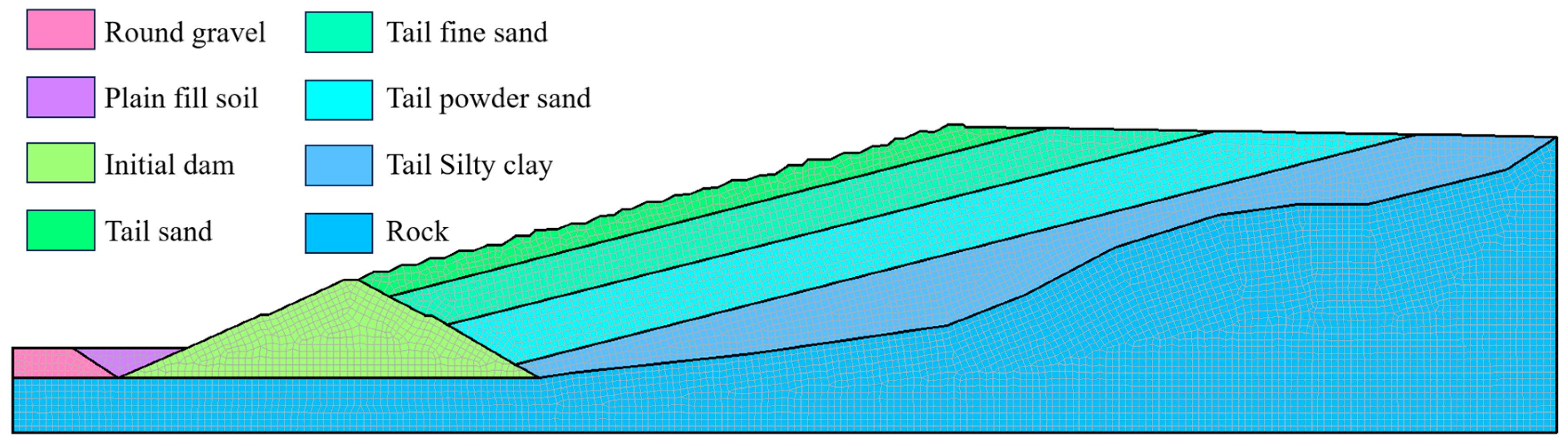 - Zhang, H.; Shen, Z.; Liu, D.; Xu, L.; Gan, L.; Long, Y. A Suggested Equivalent Method for a Drainage Structure to Analyze Seepage in Tailings Dam. Materials 2022, 15, 7154. [Google Scholar] [CrossRef]