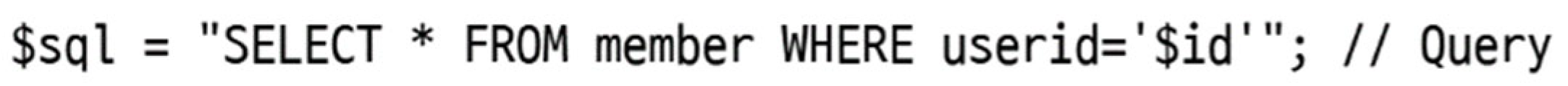 - $sql = “SELECT * FROM member WHERE userid = ′$id′”;