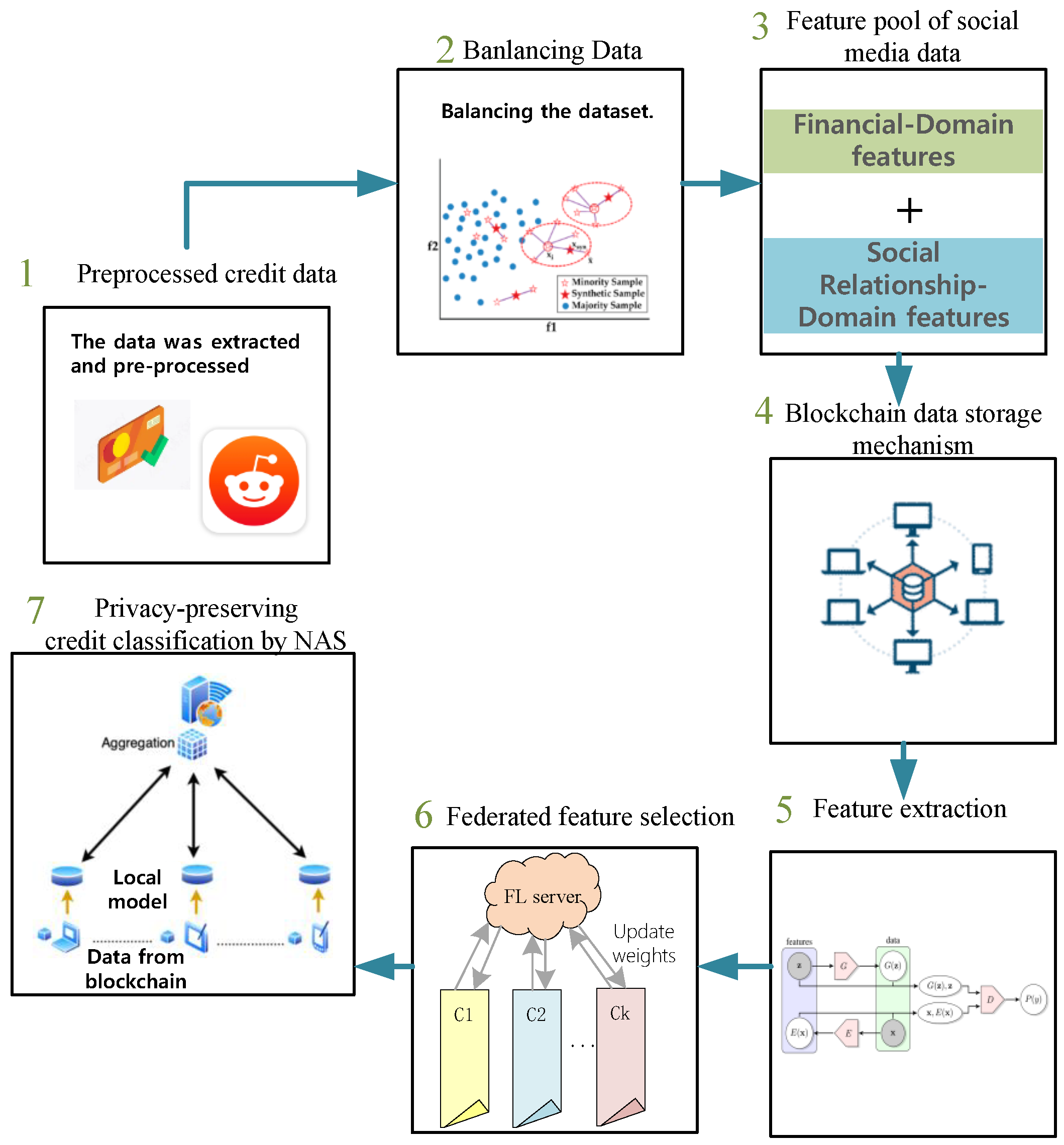 Section 3, we comprehensively describe the specific approach of our proposed automated machine learning based credit scoring method VeriCred. In the