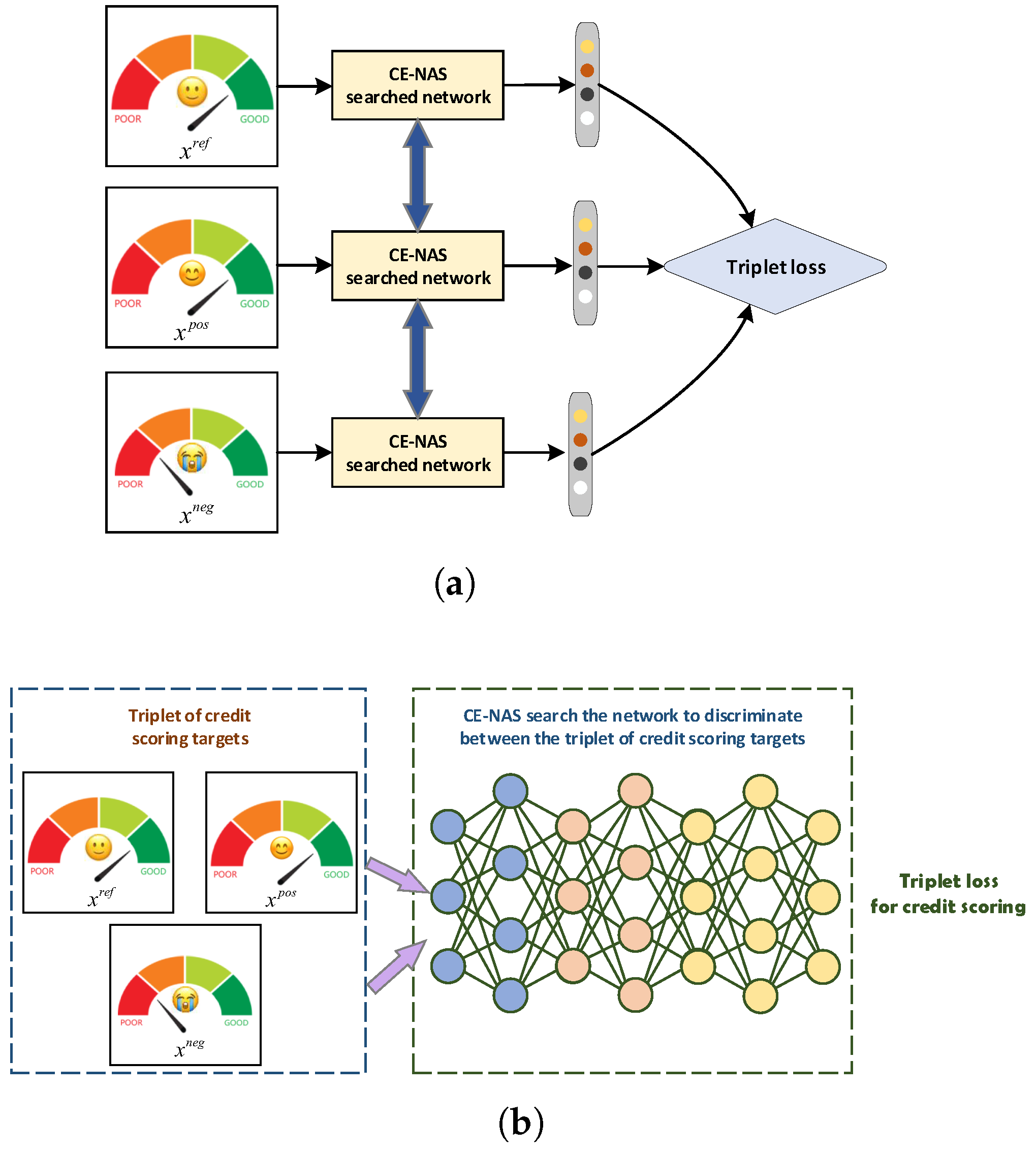 A-Triplet loss significantly enhances the model’s capacity for fine-grained differentiation among credit applicants. The performance consistency across datasets, particularly the outstanding results on the Australian dataset, aligns with our preliminary analysis regarding the importance of balanced data distributions. This synergy between architectural search and metric learning creates a more robust credit scoring paradigm capable of adapting to diverse data characteristics.