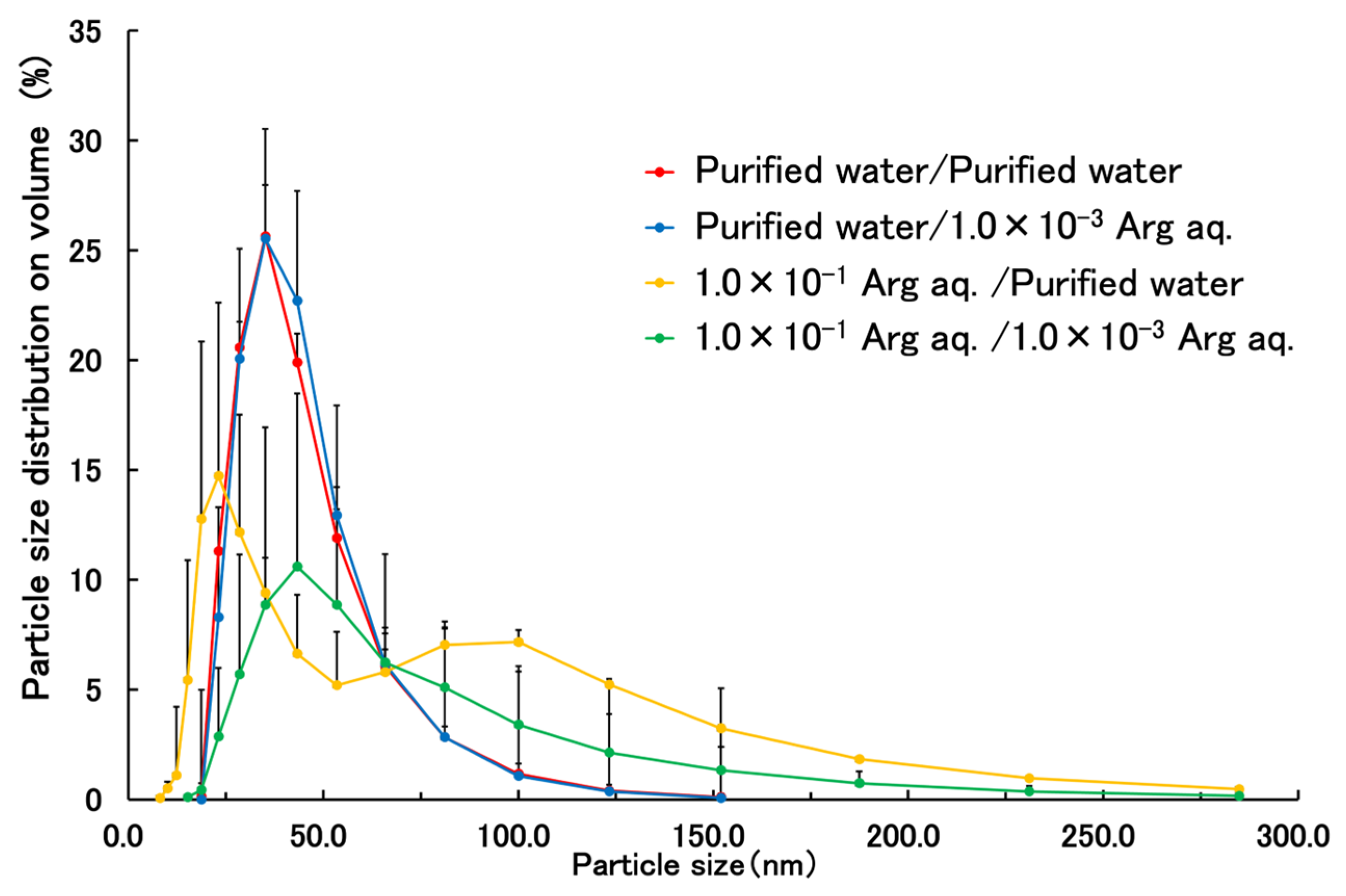 | Condition 4 | Acetone | 1.0 × 10−1 w/v% Arg aq. | 1.0 × 10−3 w/v% Arg aq. |