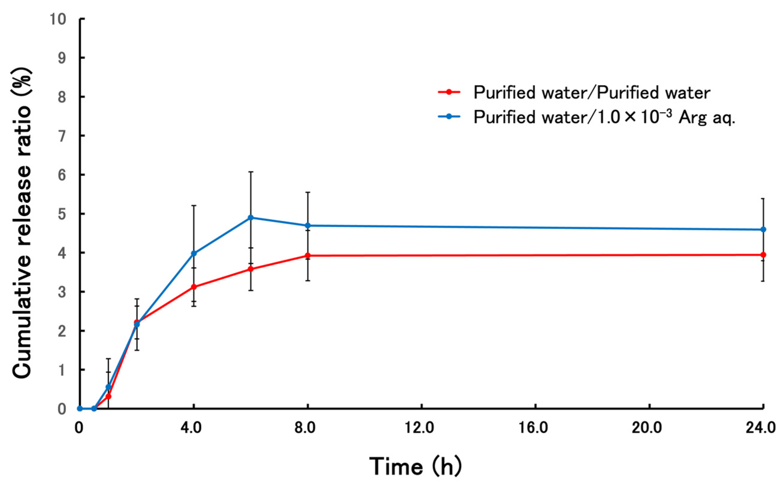 | Condition 2 | Acetone | Purified water | 1.0 × 10−3 w/v% Arg aq. |