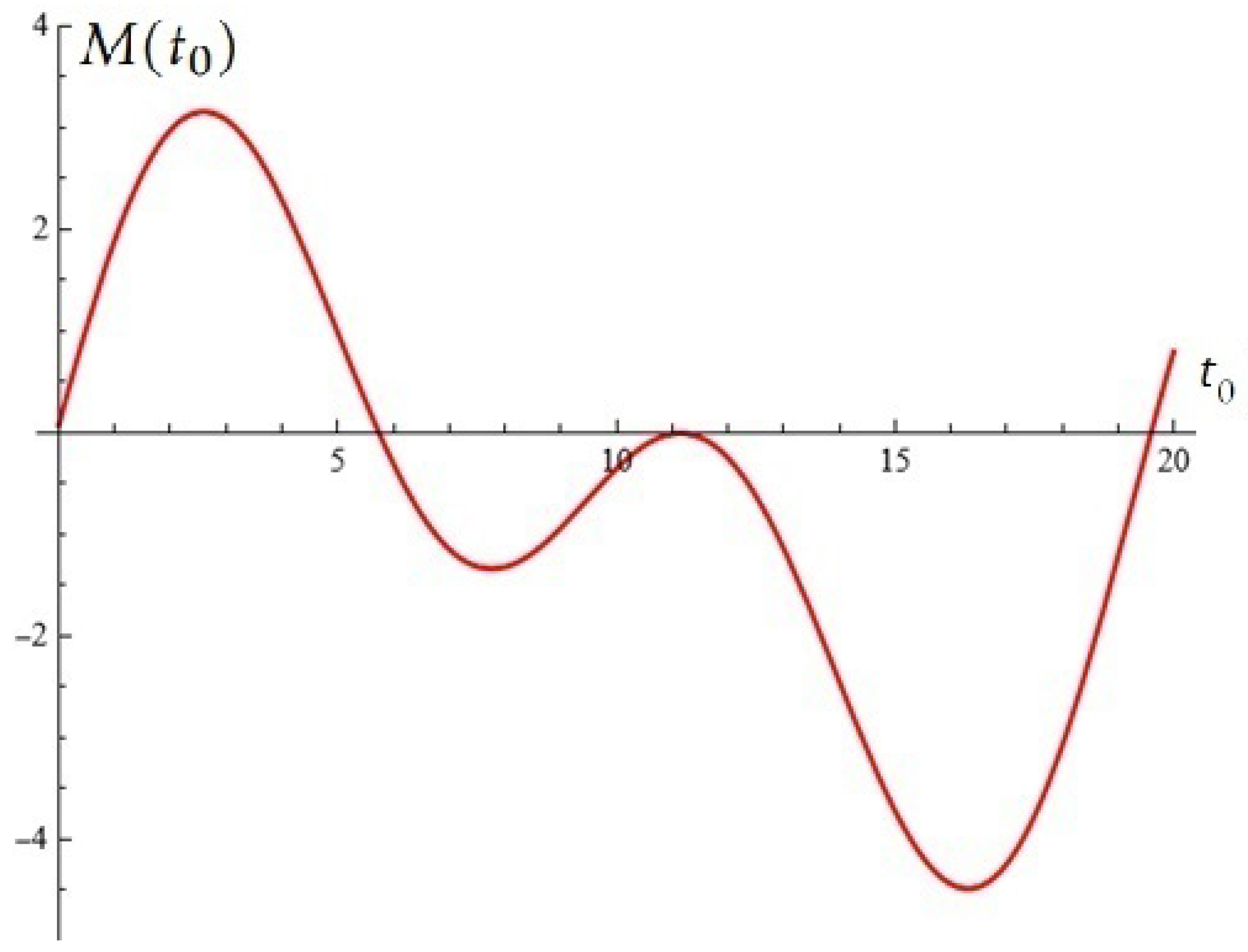 Figure 3. Melnikov function M ( t 0 ) : Numerical example 1 (b).