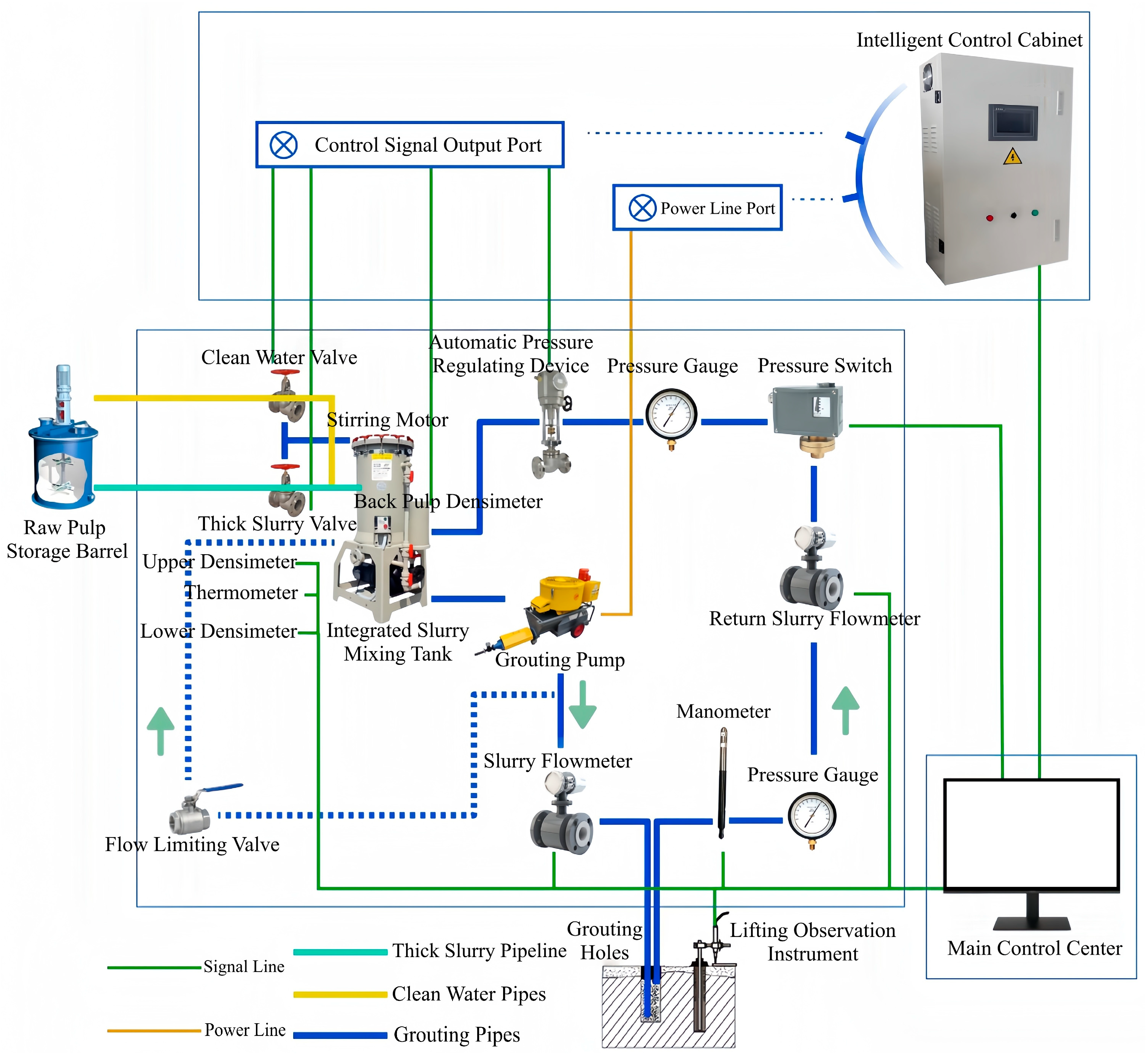 | Average Pressure | 0–10 MPa | ±0.1% FS | Measured by a pressure transducer at the grouting line. The key variable for power calculation and control. |