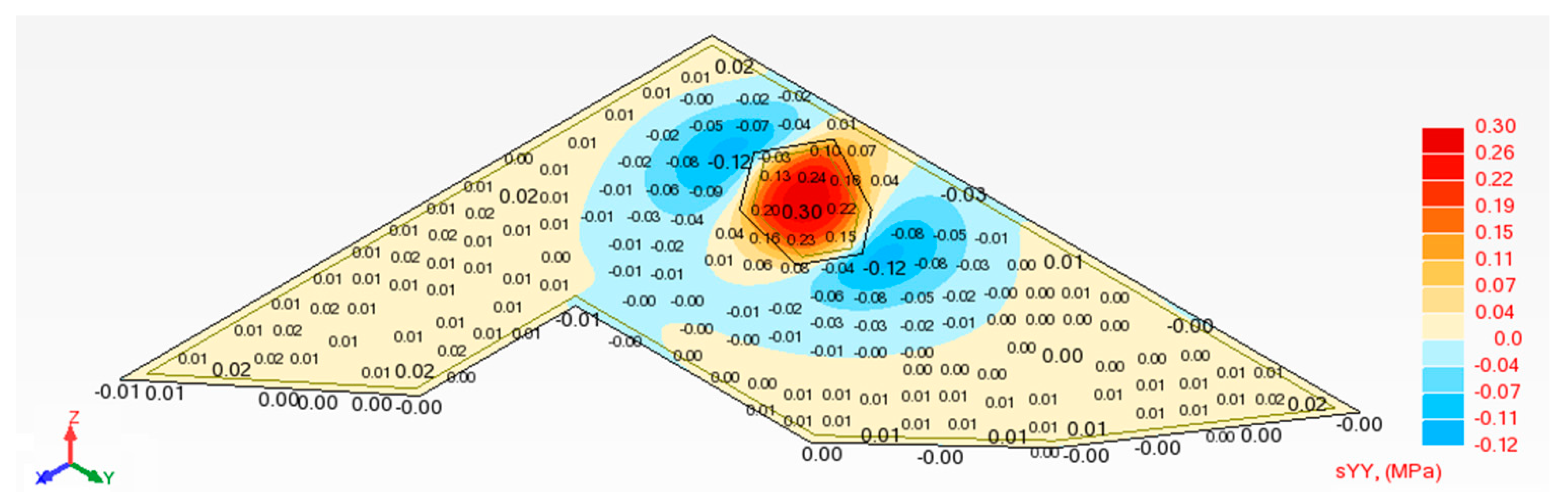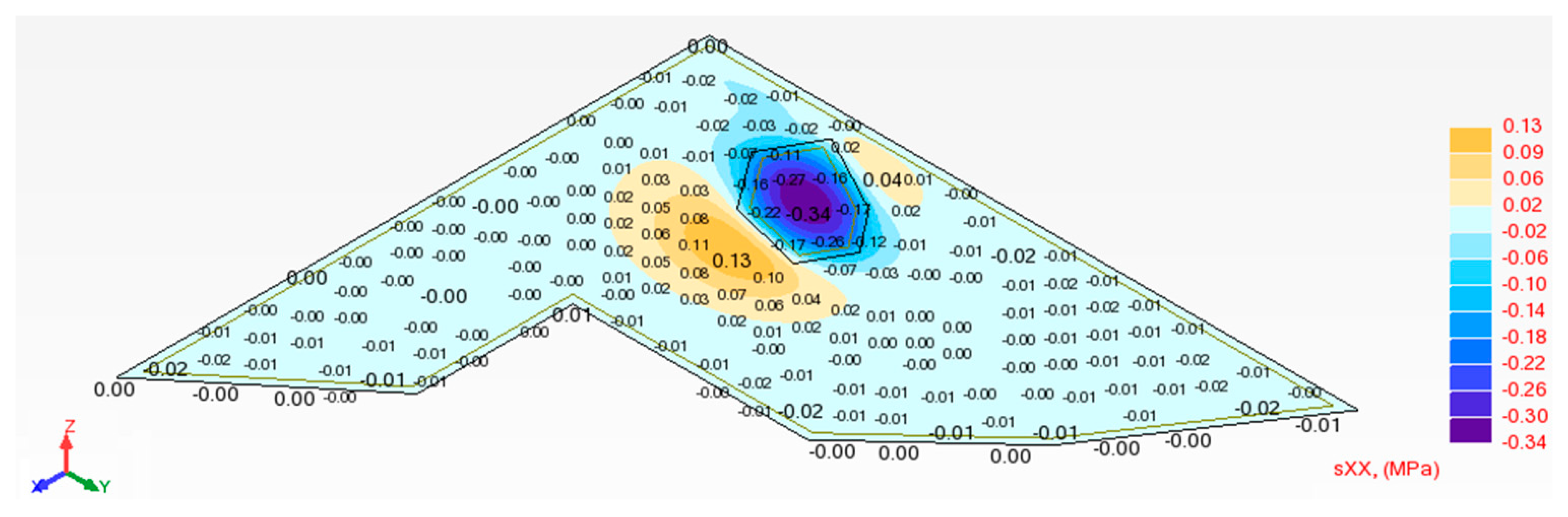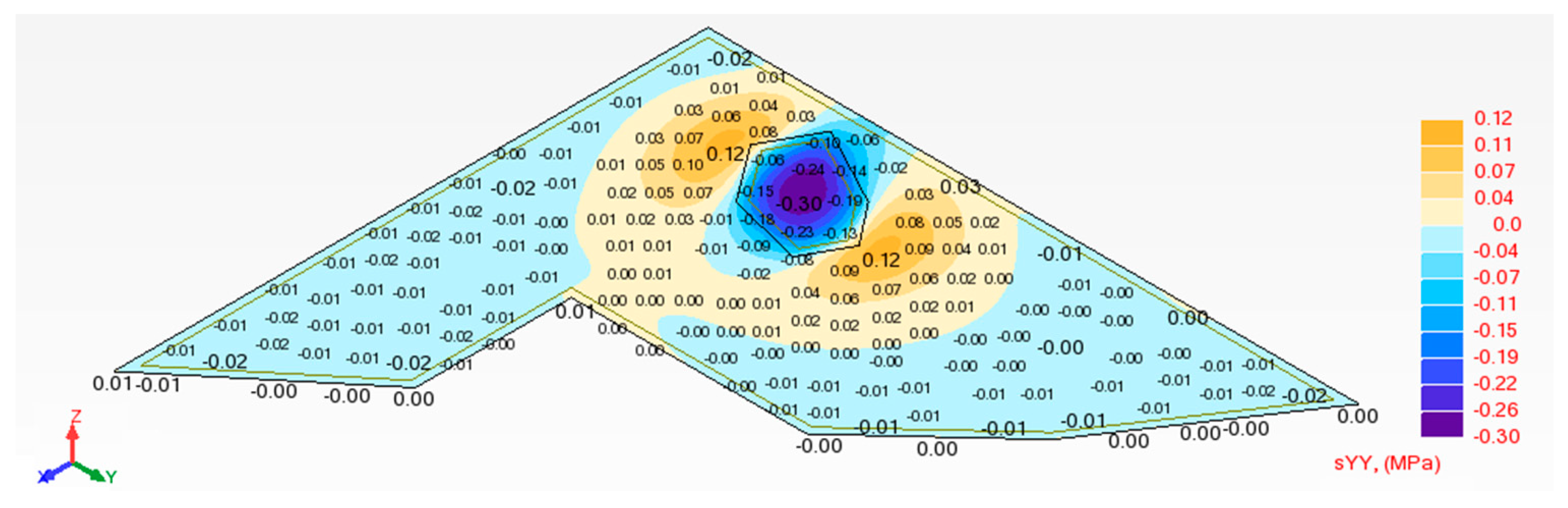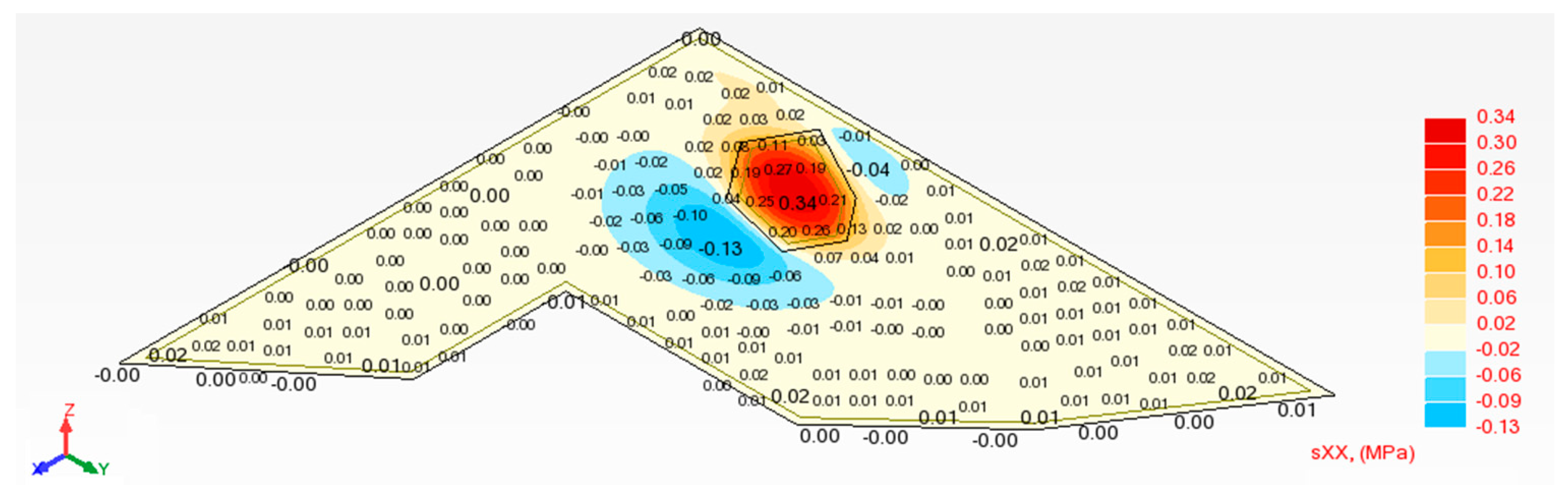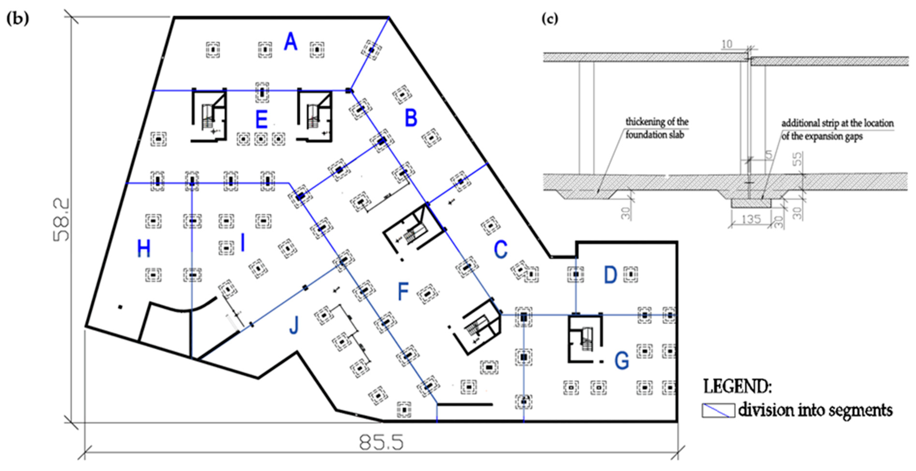 3.2. Numerical Model of the Foundation Slab in the J Segment