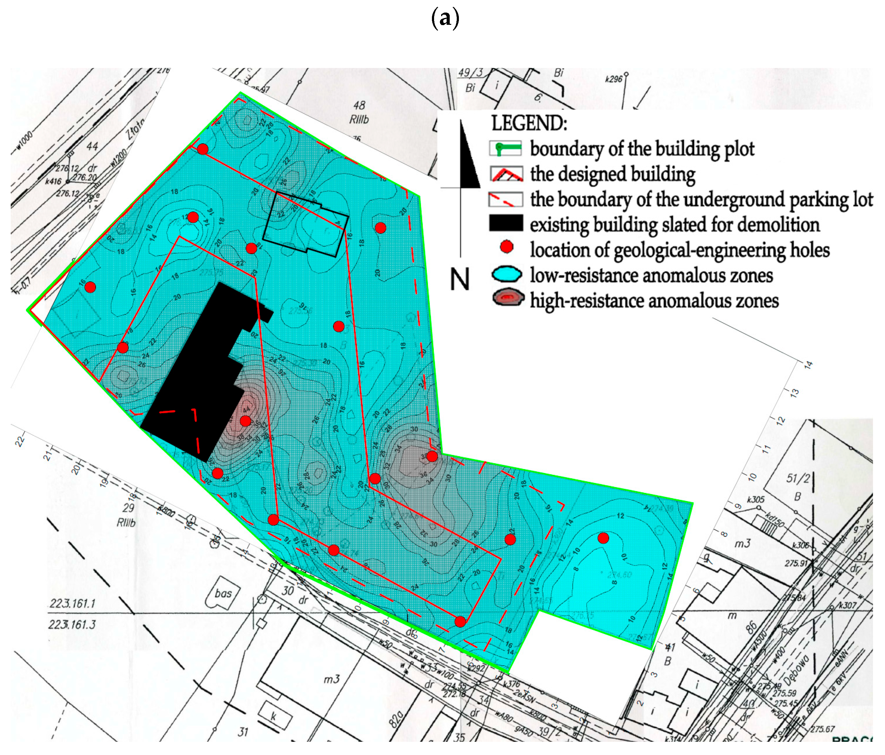 - Saharudin, M.A.; Maslinda, U.; Badrul Hisham, H.H.; Zakaria, M.; Amalina, M.K.A.; Nawawi, N.; Sulaiman, N.; Nordiana, M.M.; Ismail, N. Correlation between Resistivity and Ground Penetrating Radar (GPR) Methods in Understanding the Signatures in Detecting Cavities. IOP Conf. Ser. Earth Environ. Sci. 2017, 62, 12006. [Google Scholar] [CrossRef]
