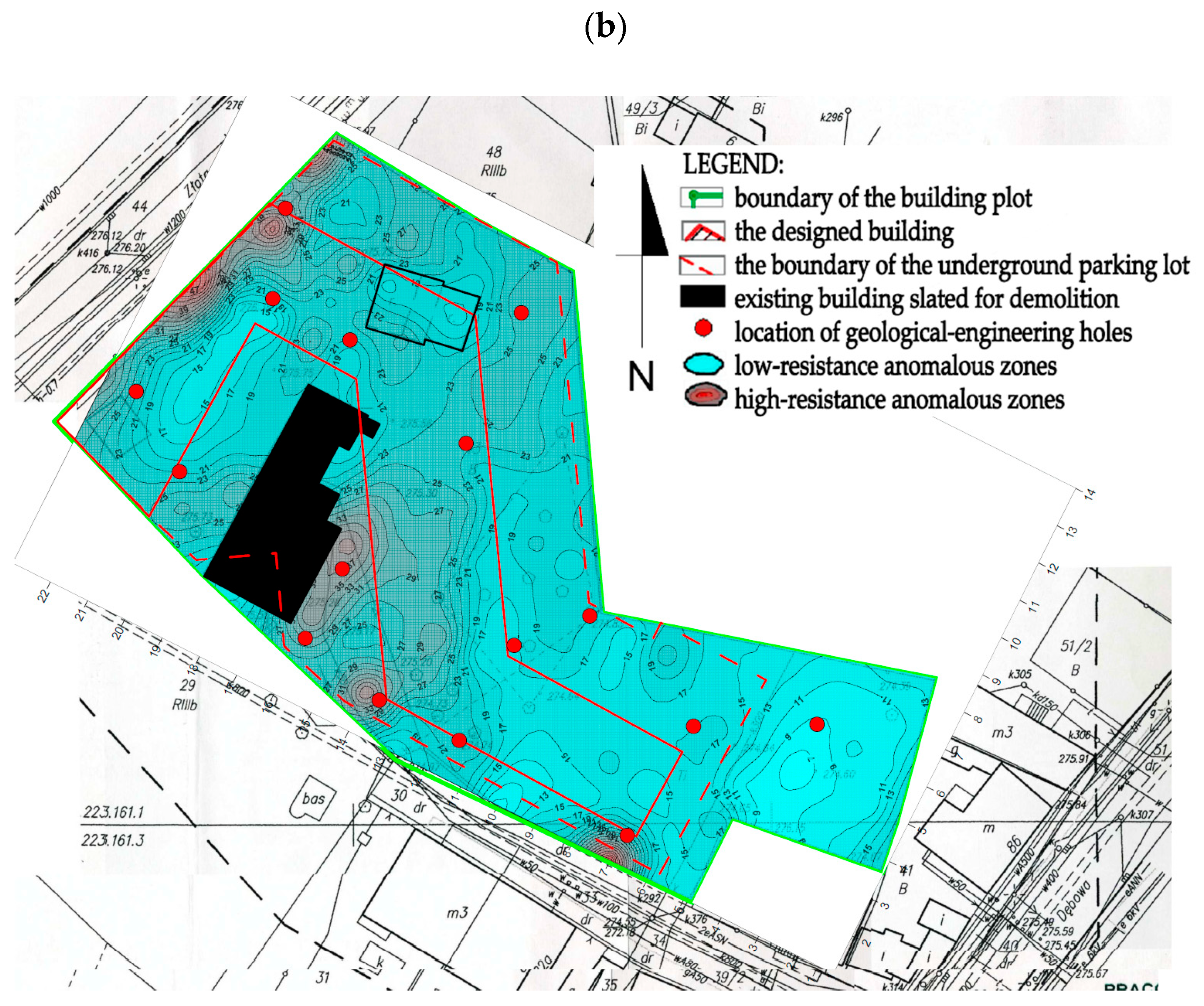 - Blachowski, J.; Warchala, E.; Koźma, J.; Buczyńska, A.; Bugajska, N.; Becker, M.; Janicki, D.; Kujawa, P.; Kwaśny, L.; Wajs, J.; et al. Geophysical Research of Secondary Deformations in the Post Mining Area of the Glaciotectonic Muskau Arch Geopark—Preliminary Results. Appl. Sci. 2022, 12, 1194. [Google Scholar] [CrossRef]