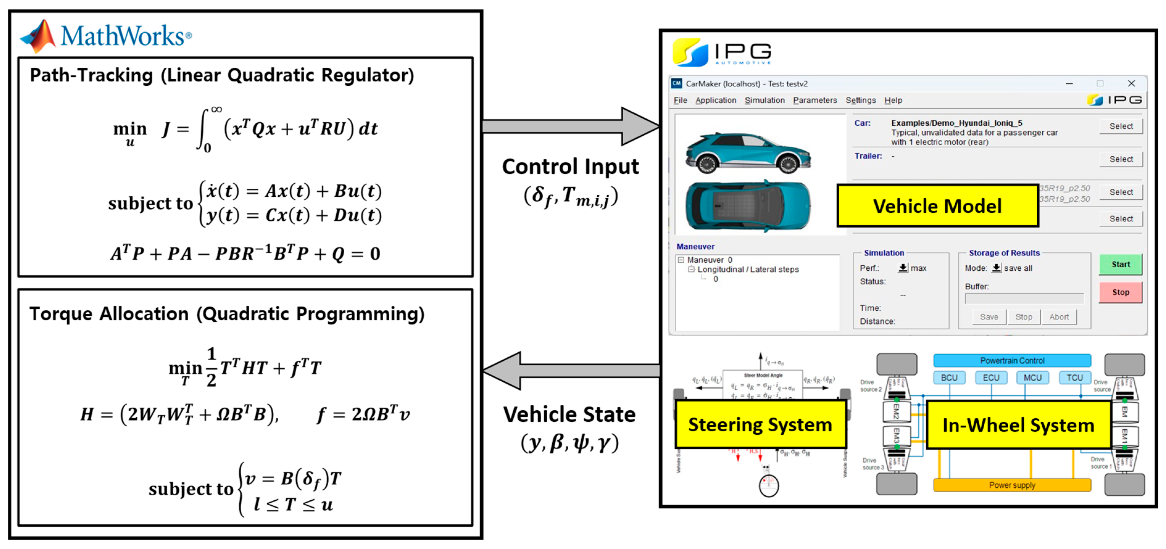 - Lee, S.; Kim, K.; Moon, S.; Kim, B.; Ahn, J.; Hwang, J.; Kim, D.; Woo, S.; Yoo, J. A novel lateral dynamics control strategy of in-wheel motor vehicle to improve agility and straight-line driving stability. IEEE Trans. Veh. Technol. 2024, 73, 9849–9864. [Google Scholar] [CrossRef]